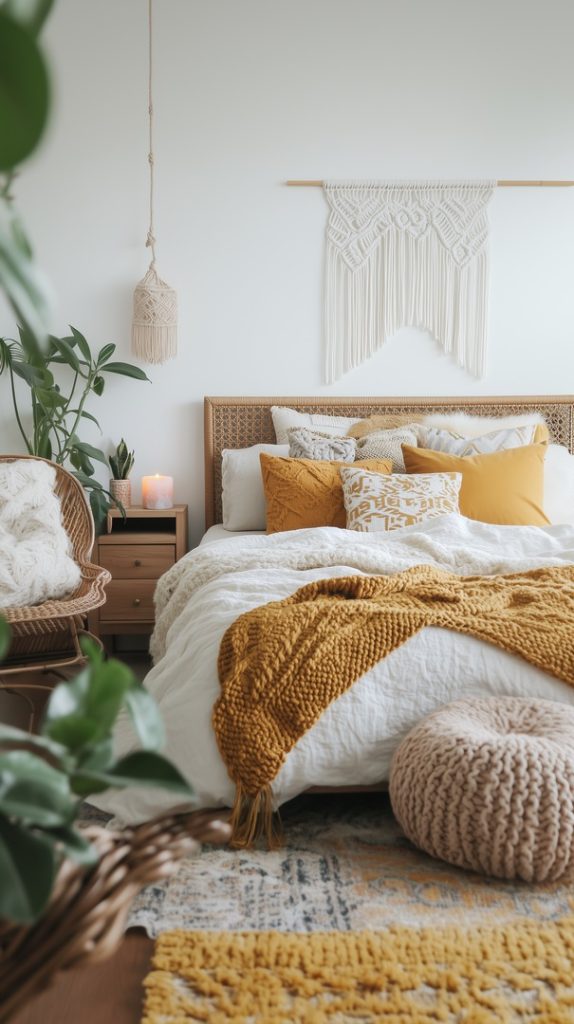 Bohemian Winter Bedroom with Mustard and Macramé Accents