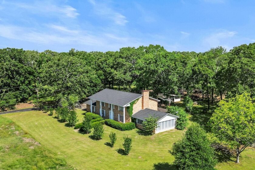 This charming property in New Boston, TX, spans an impressive 50 acres, making it ideal for a farm or ranch homestead. The main home showcases a classic architectural style with features such as a full brick exterior wall and soaring 20-foot ceilings emphasized by exposed wood beams, which provide a rustic yet elegant ambiance. The interiors are distinctive with walls clad in rare California Redwood, lending an uncommon and warm aesthetic. Added features such as a lean-to for equipment or recreational vehicles and a well house with a one-horse pump and over 15 sprinkler heads enable efficient irrigation drawn from the stocked pond, which is also complemented by a cabin and dock—perfect for a guest house or short-term rental opportunity. The property is accessed by a paved driveway and provides a serene, private retreat surrounded by natural beauty. The listed price for this expansive and well-equipped farm and ranch estate is $675,000.