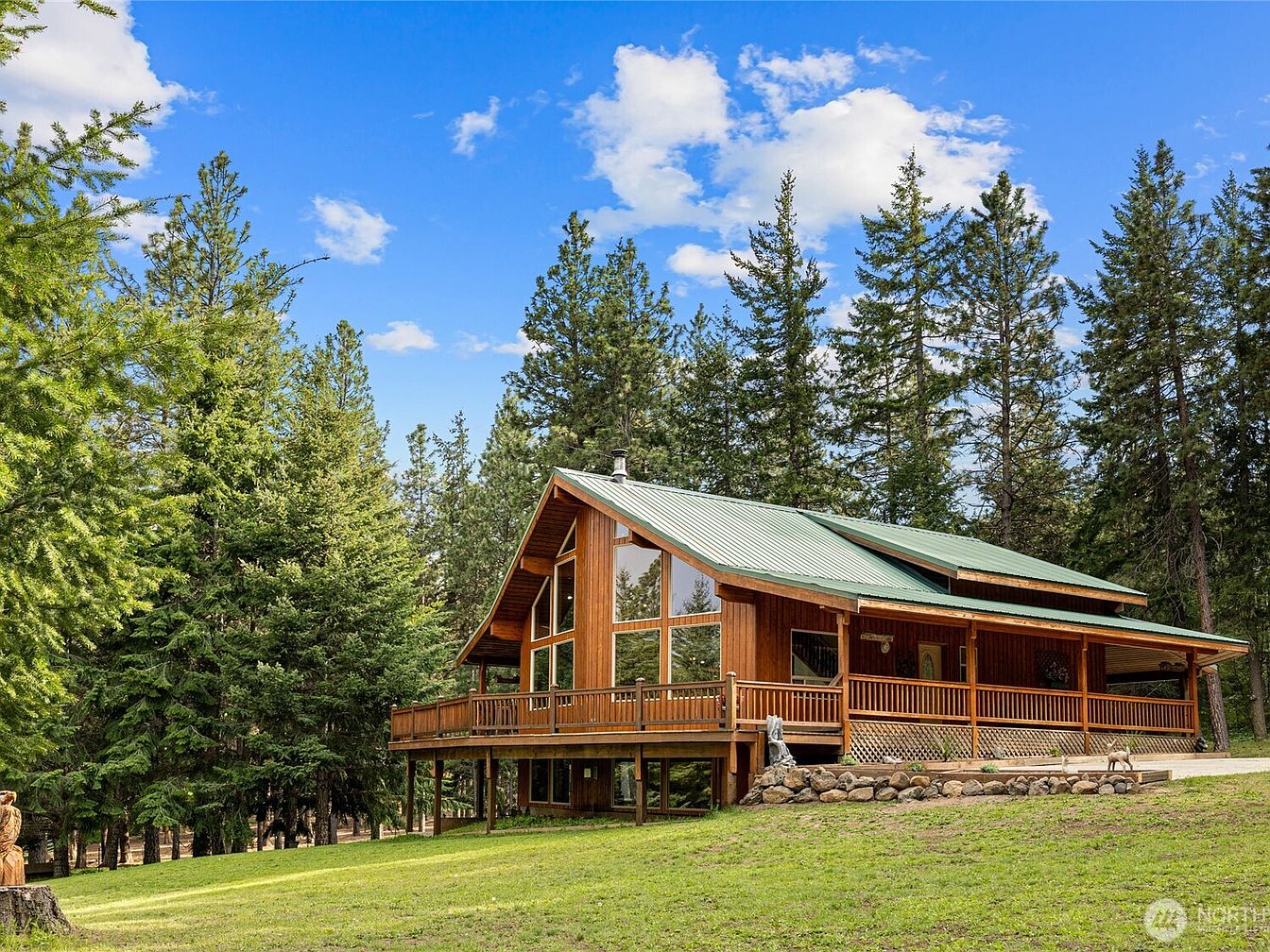 This charming home in Hidden Valley, Cle Elum, WA, exemplifies rustic architectural style with a strong emphasis on natural wood and large, expansive windows that offer abundant natural light and scenic views. The structure features a distinctive A-frame influence combined with a spacious wraparound deck, ideal for outdoor living and relaxing under the canopy of towering pine trees. Situated on an expansive 12+ acre plot, this property is perfect for outdoor enthusiasts, offering fenced and cross-fenced areas that provide ample space for gardening, roaming, or exploring the natural surroundings. Built by its original owner, this home maintains a cozy atmosphere highlighted by a wood-burning fireplace in the great room. Listed at $1,195,000, this property is a hidden gem, blending peaceful natural beauty with practical amenities for comfortable rural living.