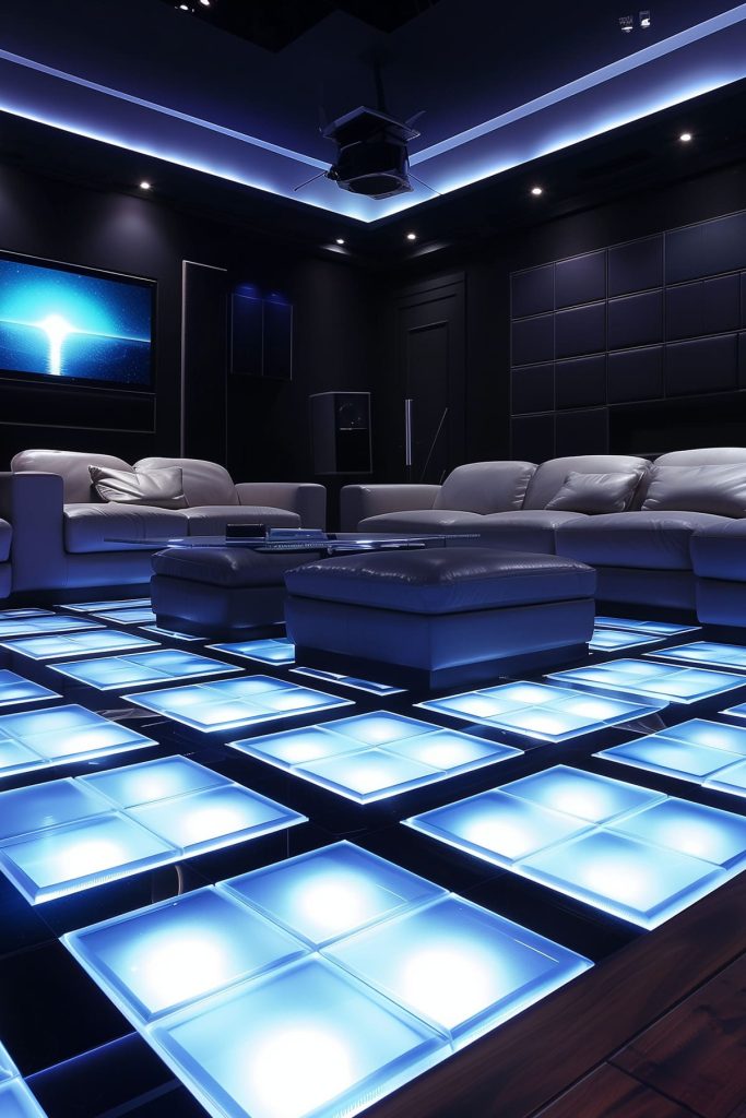 Install LED floor tiles that illuminate when stepped on, adding a futuristic touch to your theater room.