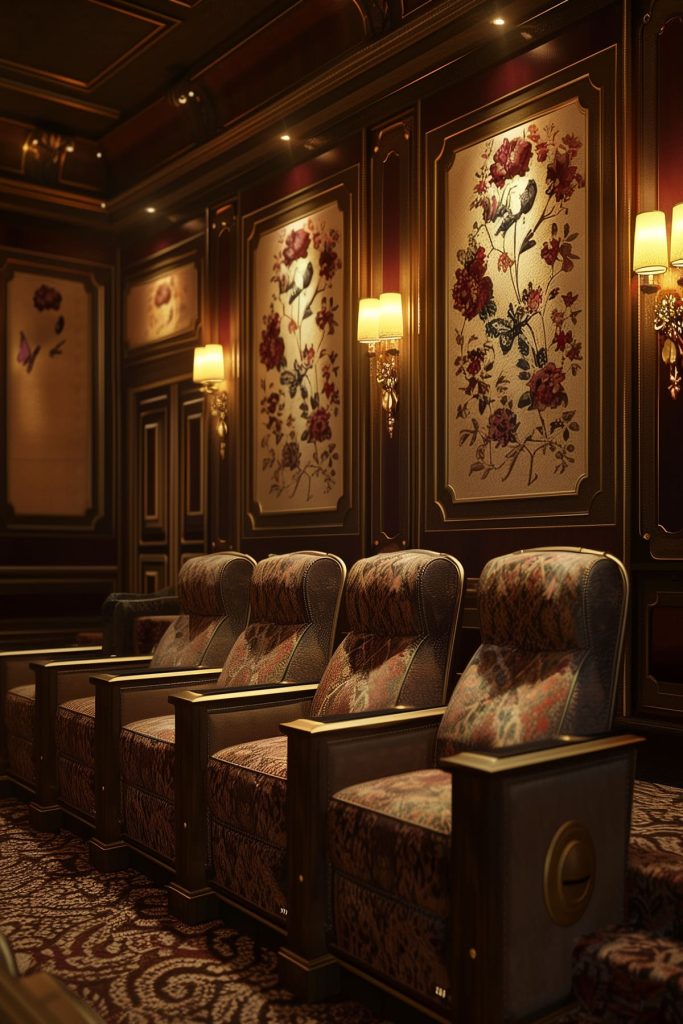Incorporate flickering LED wall sconces to mimic the ambiance of old-fashioned theater torches.