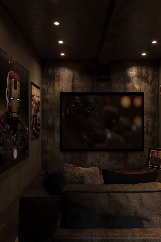 If you have movie posters or artwork displayed, highlight them with recessed spotlights to draw attention without detracting from the screen.