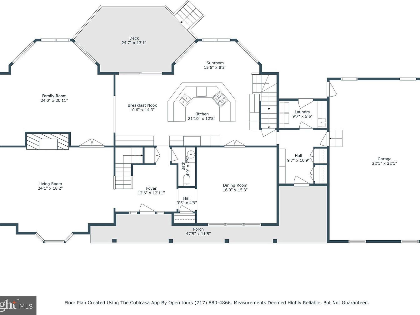This spacious main floor layout features multiple interconnected rooms designed for both comfort and functionality. Upon entry, a welcoming foyer (12’6″ x 12’11”) opens to a large living room with a bay window area. Adjacent is a substantial family room (24’0″ x 20’11”) with a fireplace, providing a cozy gathering space. The kitchen, centralized and measuring 21’10” x 12’8″, includes a large island and is connected to a breakfast nook and adjacent sunroom, ideal for casual dining and relaxation. A formal dining room (16’0″ x 15’3″) sits near the front porch, lending itself to elegant meals. The layout also includes a laundry room, hallways, and a roomy garage, all accessible through well-planned flow throughout the floor.