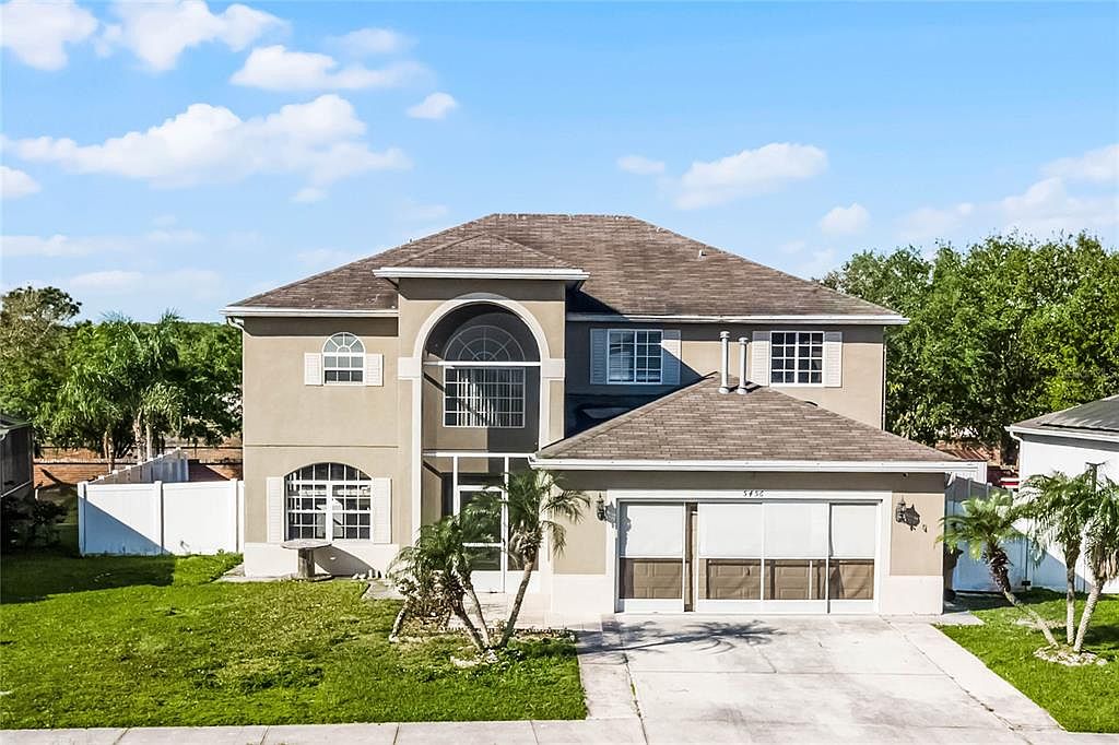 This attractive two-story single-family home located at 5456 Crepe Myrtle Cir, Kissimmee, FL, offers a blend of comfort, style, and modern convenience. Featuring a contemporary architectural design, the home is characterized by its clean lines, large arched windows, and an inviting front entry with a covered porch. Recently updated with a new roof installed in 2018, a new HVAC system in 2021, and a new water heater in 2022, this residence embodies both reliability and modern efficiency. The interior layout includes 4 spacious bedrooms and 2.5 bathrooms, designed with an open floor plan that enhances natural light through high ceilings. The freshly painted walls and brand new bedroom carpets create a fresh and welcoming atmosphere. The kitchen is well-appointed with solid wood cabinetry, sleek solid-surface and granite countertops, along with stainless steel appliances, complemented by a cozy breakfast nook ideal for everyday dining. The upstairs primary suite serves as a private retreat featuring ample space, a large walk-in closet, and a serene ambiance. Additional bedrooms and a full guest bathroom are also located on the upper level. The home is further enhanced by ceiling fans, abundant storage areas, and carefully thought-out living spaces aimed at maximizing comfort and functionality. Located in a thriving community, residents benefit from access to recreational amenities such as a park, playground, and tennis courts, making it perfect for families and outdoor enthusiasts. Offered at a listing price of $375,000, this well-maintained property presents an excellent opportunity for those seeking a beautiful and functional home in Kissimmee.