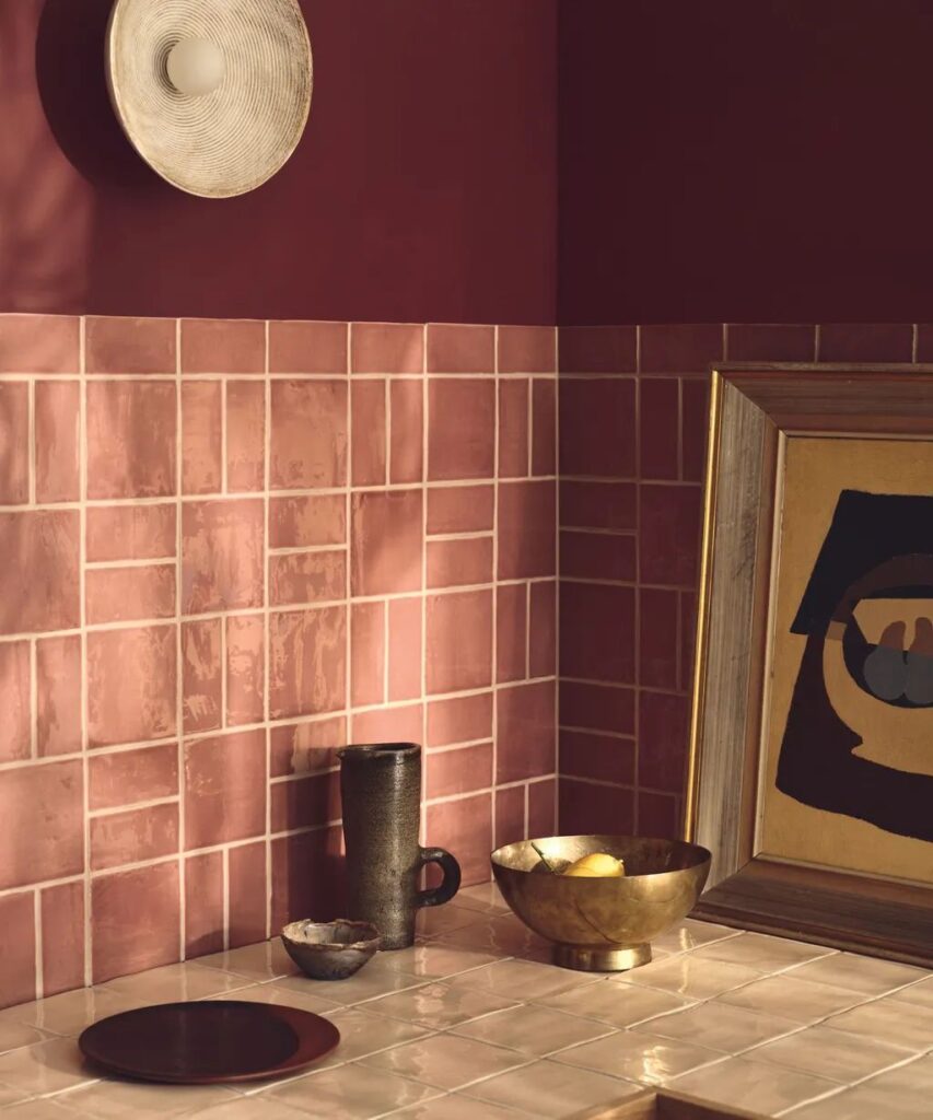 Channel the freshness of spring with the lively pairing of pastel pink and vibrant green. Pink introduces softness and whimsy, while green contributes vitality and energy, resulting in a space that feels alive and cheerful. Use this combination on tiled backsplashes, painted cabinetry, or decorative elements to bring a playful yet stylish touch to your kitchen. This pairing works particularly well in smaller kitchens, where light and bright colors create a sense of spaciousness.