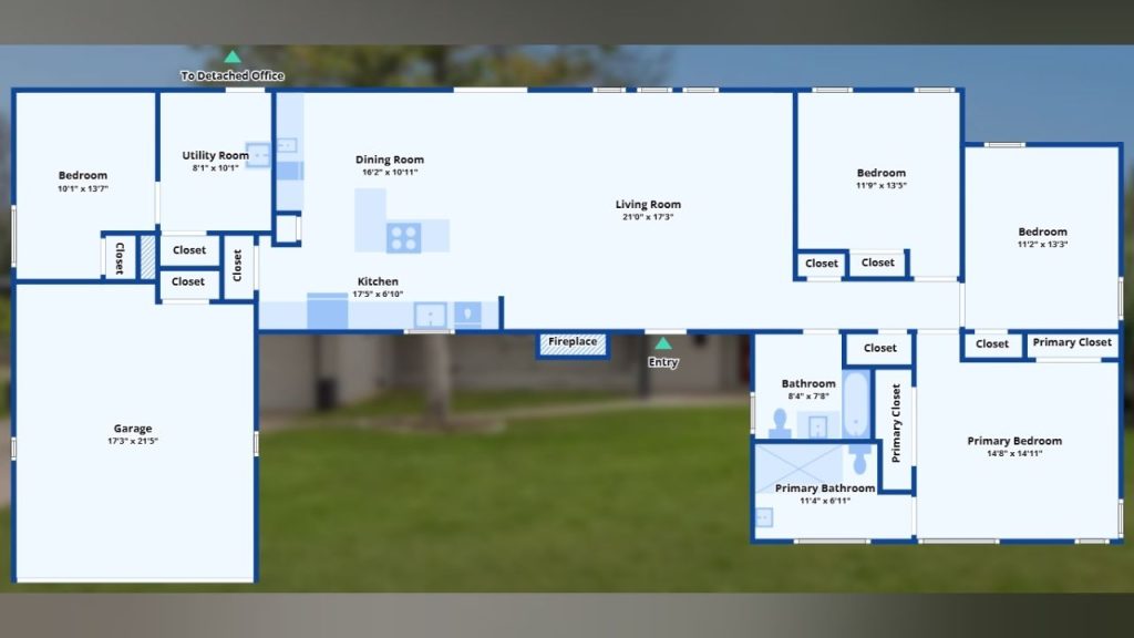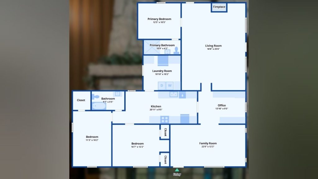 Spanning a smart and spacious layout, this main level offers three bedrooms, a dedicated office, and multiple living areas designed for comfort and functionality. The open-concept living room with a fireplace flows into a large kitchen and adjacent family room, perfect for entertaining. A private primary suite, ample storage, and a laundry room add everyday convenience, creating a home that balances style with practicality.