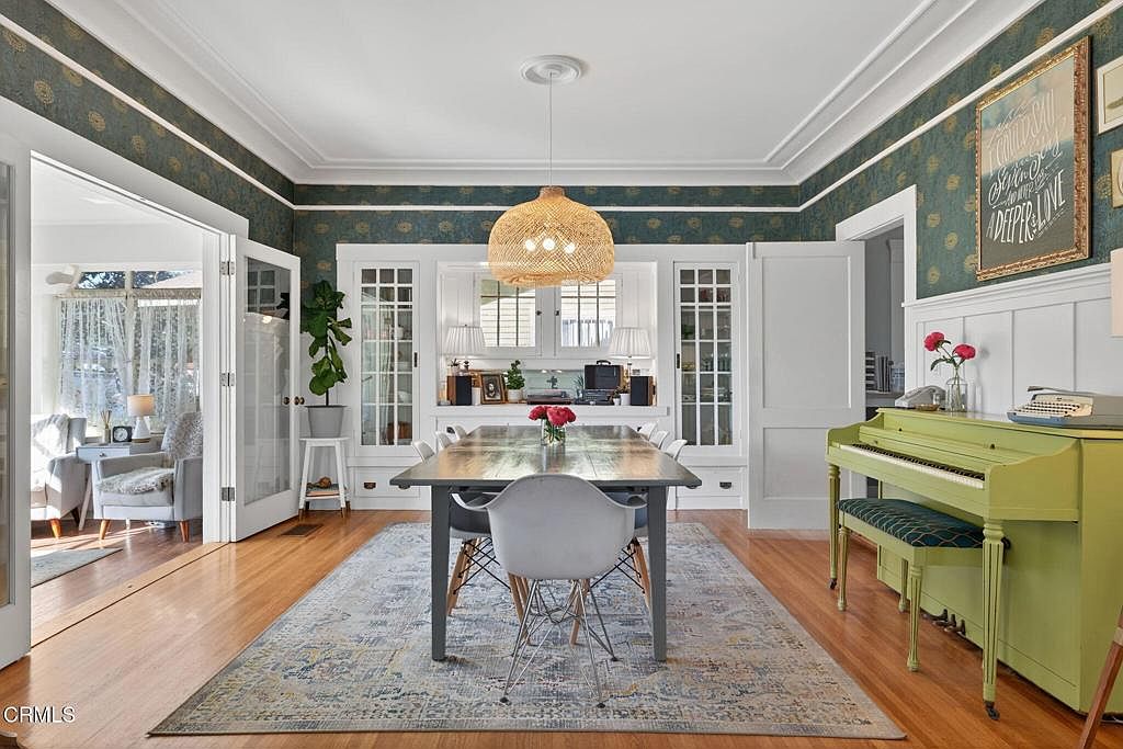 Rich in historical significance, this 1912 Craftsman home in Oxnard’s historic district is a beautifully remodeled 5-bedroom, 2-bath gem listed at $1,050,000. The home showcases classic Craftsman architectural elements—broad eaves, sturdy posts, and a welcoming front porch with a swing—all meticulously restored to honor its early 20th-century charm. Inside, original hardwood floors, sun-drenched rooms, and period-style baths merge with modern improvements, including a stylish kitchen and updated bathrooms. Upstairs and downstairs bedrooms ensure convenience, while the large, landscaped corner lot features a bonus backyard studio and detached garage, offering versatility and abundant space. This home is a rare opportunity to own a lovingly restored piece of Oxnard’s architectural history ready for new memories.