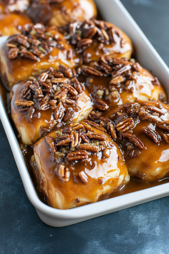 Fluffy Hawaiian sweet rolls transformed into gooey, caramel-laden sticky buns with chopped pecans, butter, and brown sugar. These indulgent treats are easy to make and perfect for breakfast or dessert.