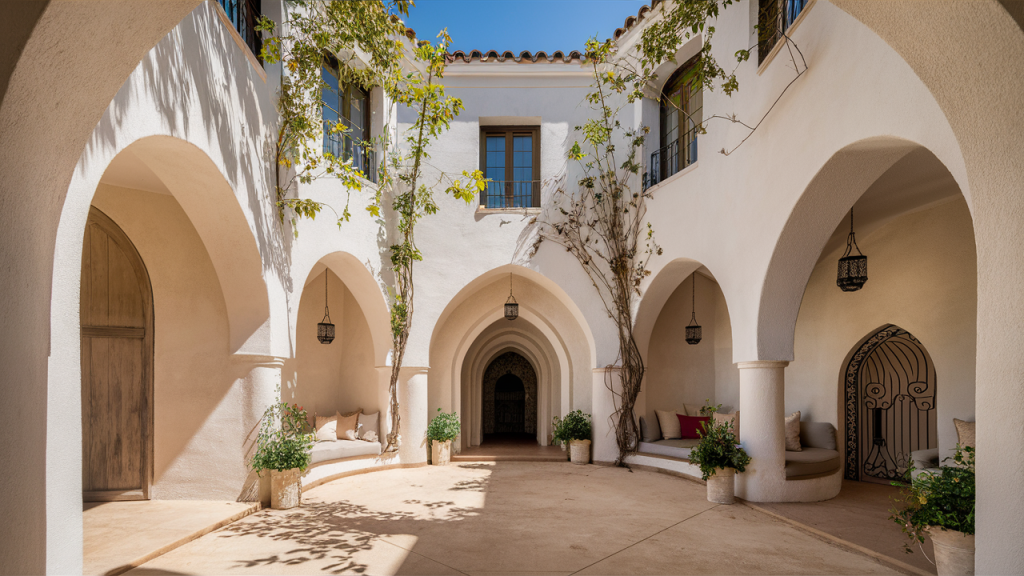 Incorporate arches in doorways, niches, or trellises to channel the signature look of Moorish design. These curved forms soften the architecture and create elegant transitions between spaces. Even if you’re not altering structure, you can mimic the effect with arched mirrors or arched garden trellises as visual stand-ins.