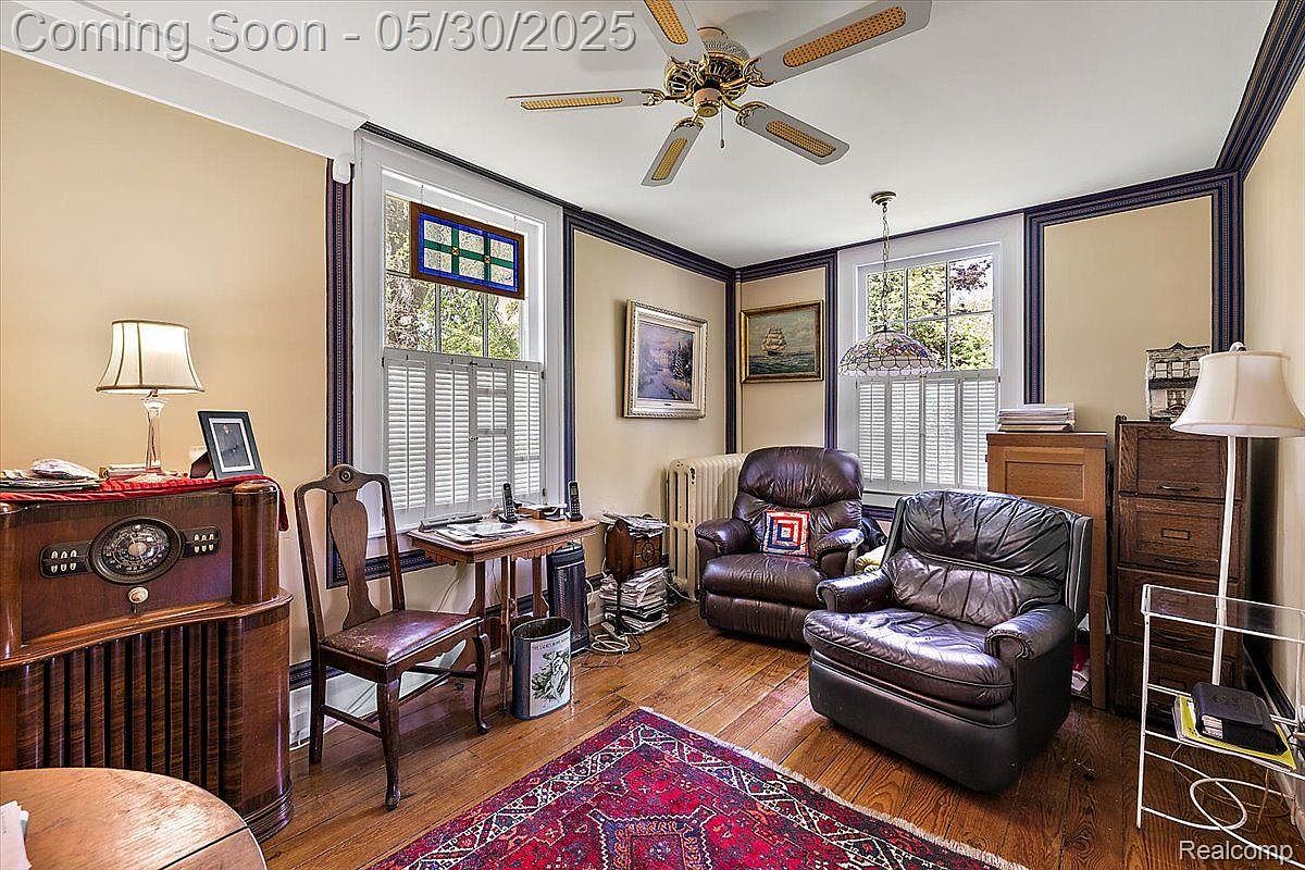 This historic residence in Grosse Pointe Park, Michigan, represents a rare and elegant example of classic brick architecture, renowned as the oldest brick home in the Grosse Pointe area. With nearly 200 years of history, the home is recognized as a Michigan Landmark and holds a Michigan State Historic Designation, though it does not carry a National Historic Designation, allowing for flexible remodeling. The home is beautifully situated on just under an acre, providing ample shaded and lush green lawn space surrounded by mature trees and manicured hedges. Built approximately in the early 19th century, this two-story brick home features a stately facade with green shutters and a traditional symmetrical window layout. The listing price is $750,000, making this a unique opportunity to own a piece of Michigan’s rich history on a large, beautiful plot in a coveted area.