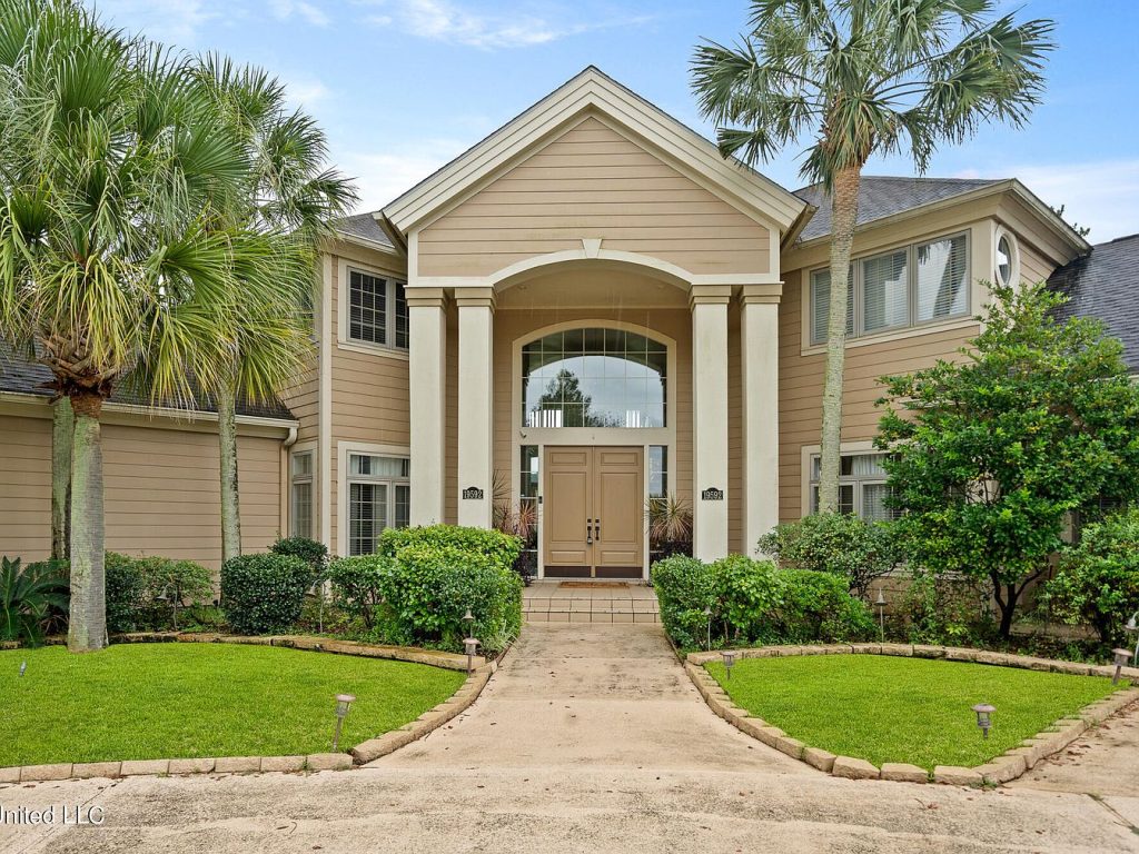 This exquisite contemporary home, built in Gulfport, MS, offers luxurious living on the prestigious Windance Country Club golf course. Boasting over 5,000 square feet of refined space, the residence features soaring ceilings and a dramatic floor-to-ceiling window wall that floods the interior with natural light. The architectural style is distinctly contemporary with elegant clean lines, highlighted by a grand entryway supported by bold columns. The home includes a gourmet kitchen with custom cabinetry, high-end appliances, and a large island that flows into a casual dining nook overlooking the pool and golf course. The spacious first-floor primary suite serves as a private retreat, complete with an oversized walk-in closet, an elegant en-suite bathroom, and serene views of lush greenery. Designed for entertainment and relaxation, the home includes a poker room, theater room, exercise room, and multiple family spaces. Outdoor living is equally impressive with a screened pool area, private hot tub, outdoor kitchen, grilling station, and a private putting green for golf enthusiasts. The asking price for this exceptional property is $749,900, offering a rare opportunity to experience ultimate golf course living in one of Gulfport’s most sought-after communities.