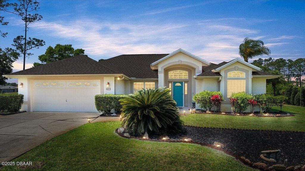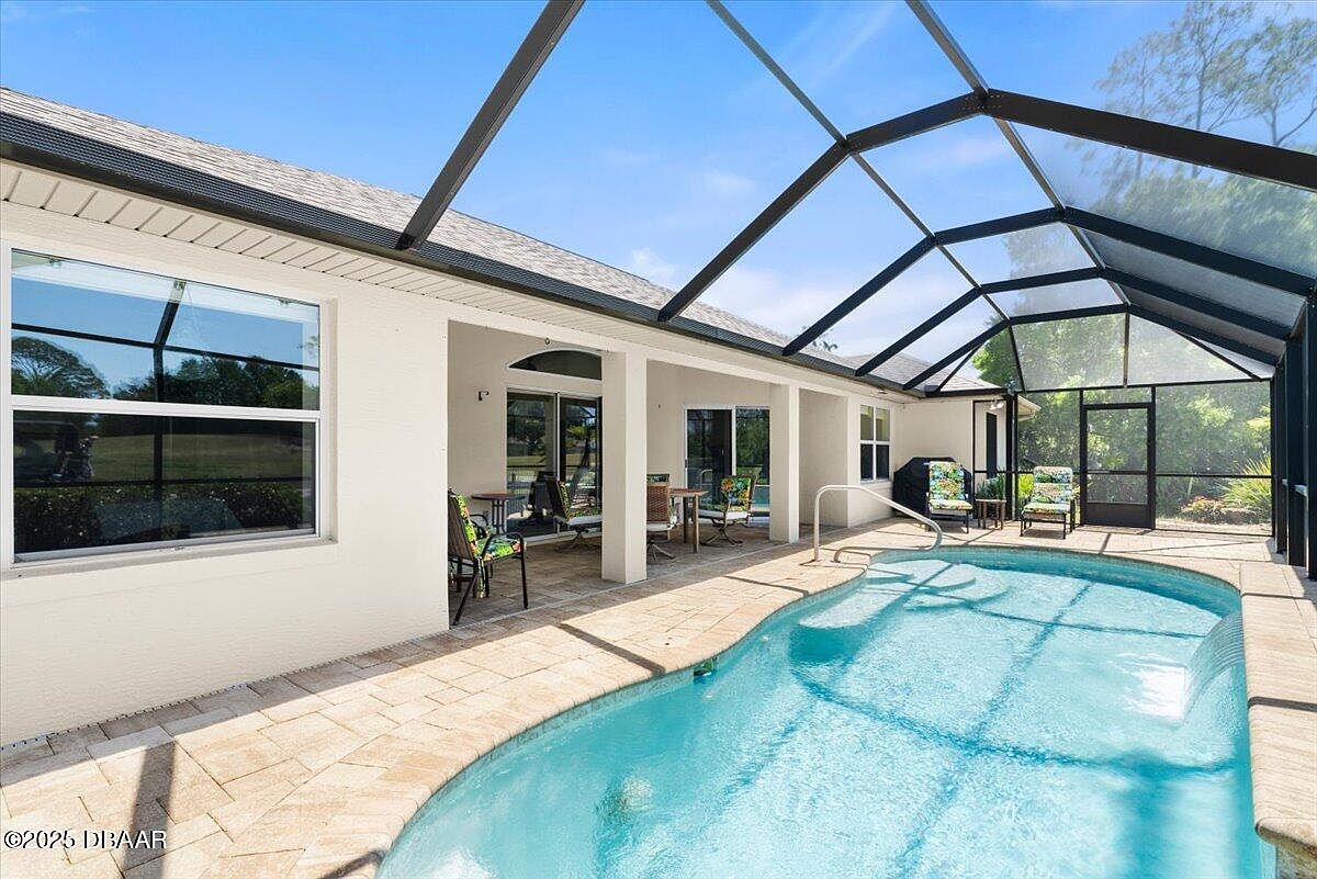 This charming home exhibits a contemporary Florida ranch architectural style, characterized by its single-story layout, clean lines, and practical design optimized for warm weather living. Nestled ideally on the Pine Lakes Golf Course in Palm Coast, Florida, this residence embraces the region’s relaxed lifestyle with a beautifully landscaped front yard and a neatly paved driveway leading to the spacious 2-car garage. Built with attention to both comfort and aesthetics, the property highlights a 2022 roof replacement ensuring modern standards and durability. The interior features three bedrooms and two bathrooms, including a primary suite with a soaking tub and a separate walk-in shower, adding luxury and convenience. The flooring throughout the home is a thoughtful mix of laminate in the main living areas and primary bedroom, tile in bathrooms and laundry, and carpet in the guest rooms, complementing the natural light that floods the space. For outdoor leisure, a screened-in pool with a covered patio and ceiling fan creates an inviting setting for entertaining or relaxing while overlooking the scenic golf course. The inclusion of an inside laundry room and an external shed enhances storage capabilities, meeting practical everyday needs. Offered at $449,000, this single-family home comes with no HOA fees, providing freedom and flexibility in homeownership.