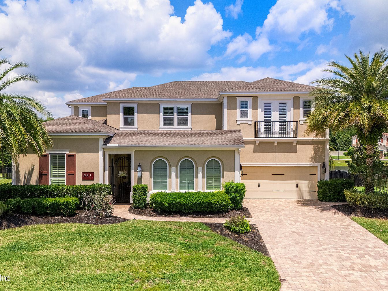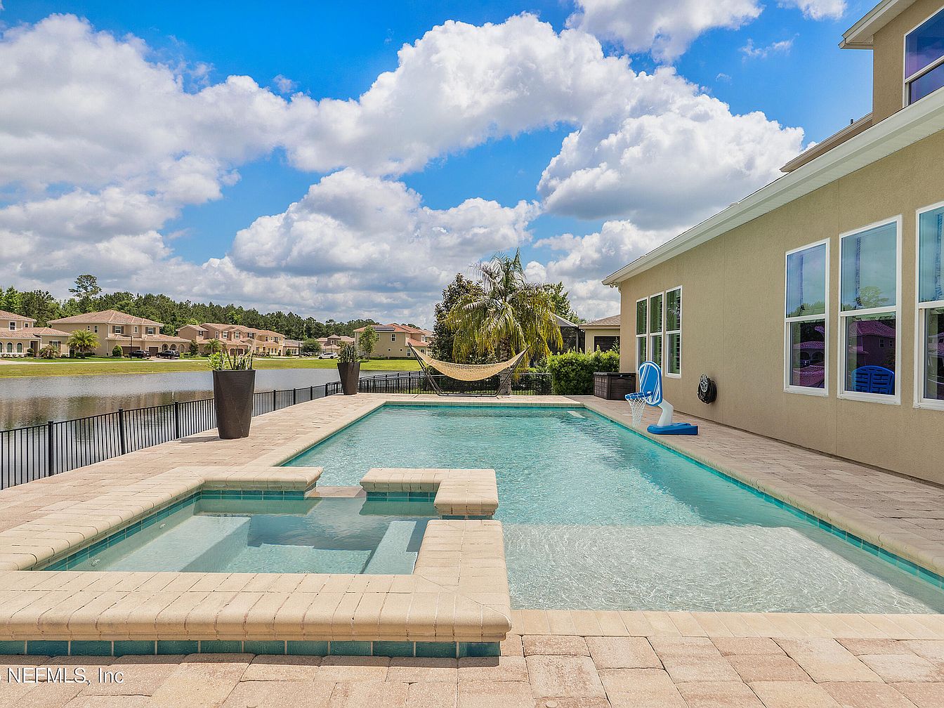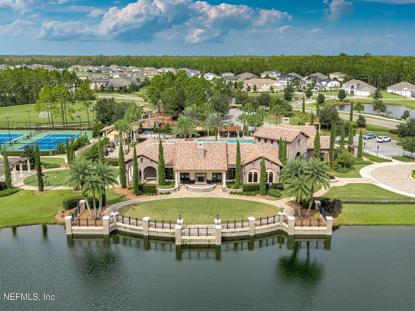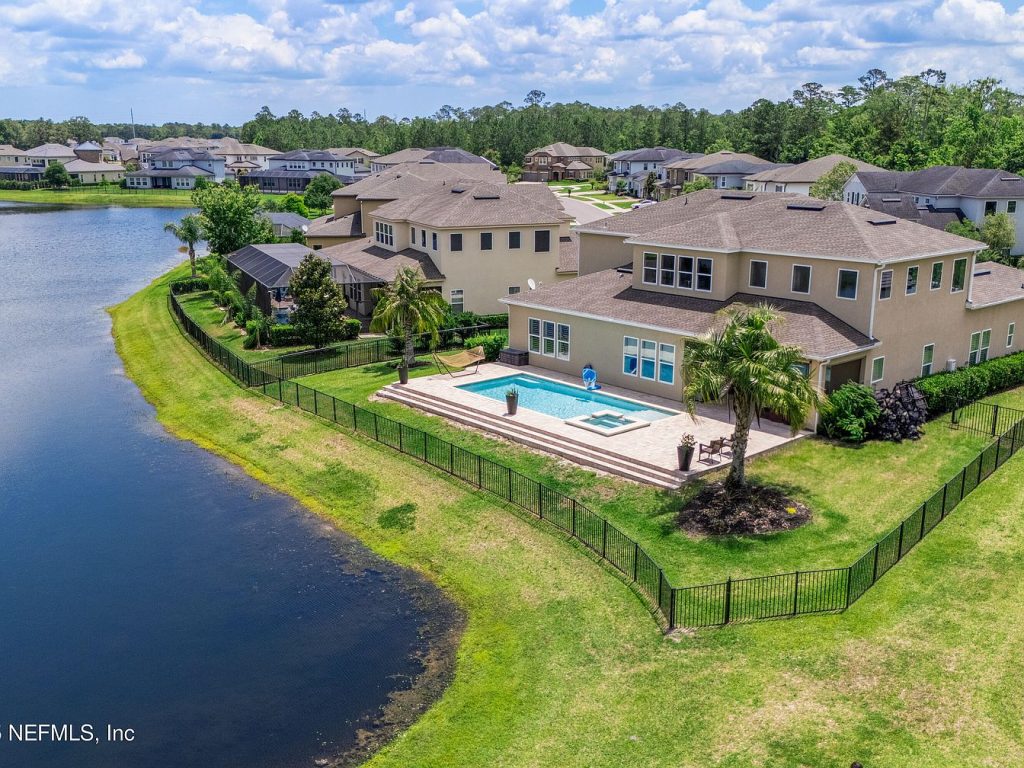 This stunning property is a luxurious, modern home situated in the prestigious gated community of Celestina in Saint Johns County, Florida. The architectural style is contemporary with clean lines, large windows, and a neutral color palette that blends seamlessly with the natural surroundings and waterfront location. Featuring 6 spacious bedrooms and 4.5 elegant bathrooms, the residence boasts a grand entrance with soaring ceilings, rich hardwood floors, and custom crown molding. Additional notable features include plantation shutters, custom lighting, whole-home surround sound, a three-car garage, and a large laundry room with ample storage. The property enjoys a sizeable plot area with lush landscaping and is positioned along a tranquil water body, enhancing the peaceful setting. The home resides within the top-rated St. Johns County School District and is conveniently close to shopping, dining, and major roadways, adding to its appeal for comfortable, luxurious family living. Listed at $1,399,999, this exceptional home combines luxury, functionality, and an enviable location, making it an extraordinary opportunity in the Saint Johns real estate market.