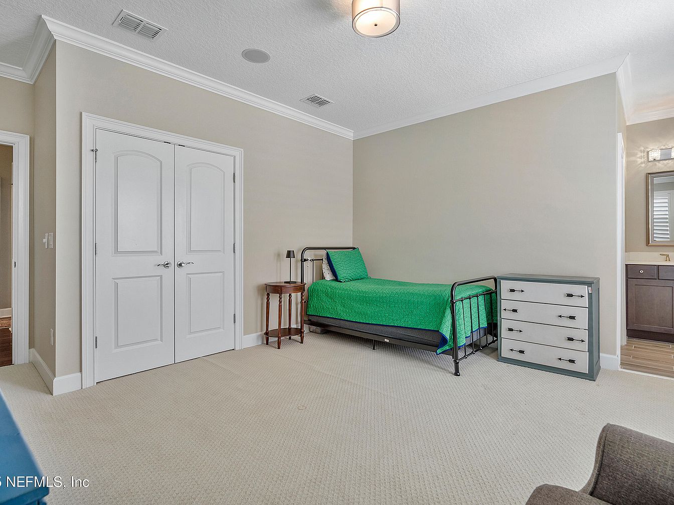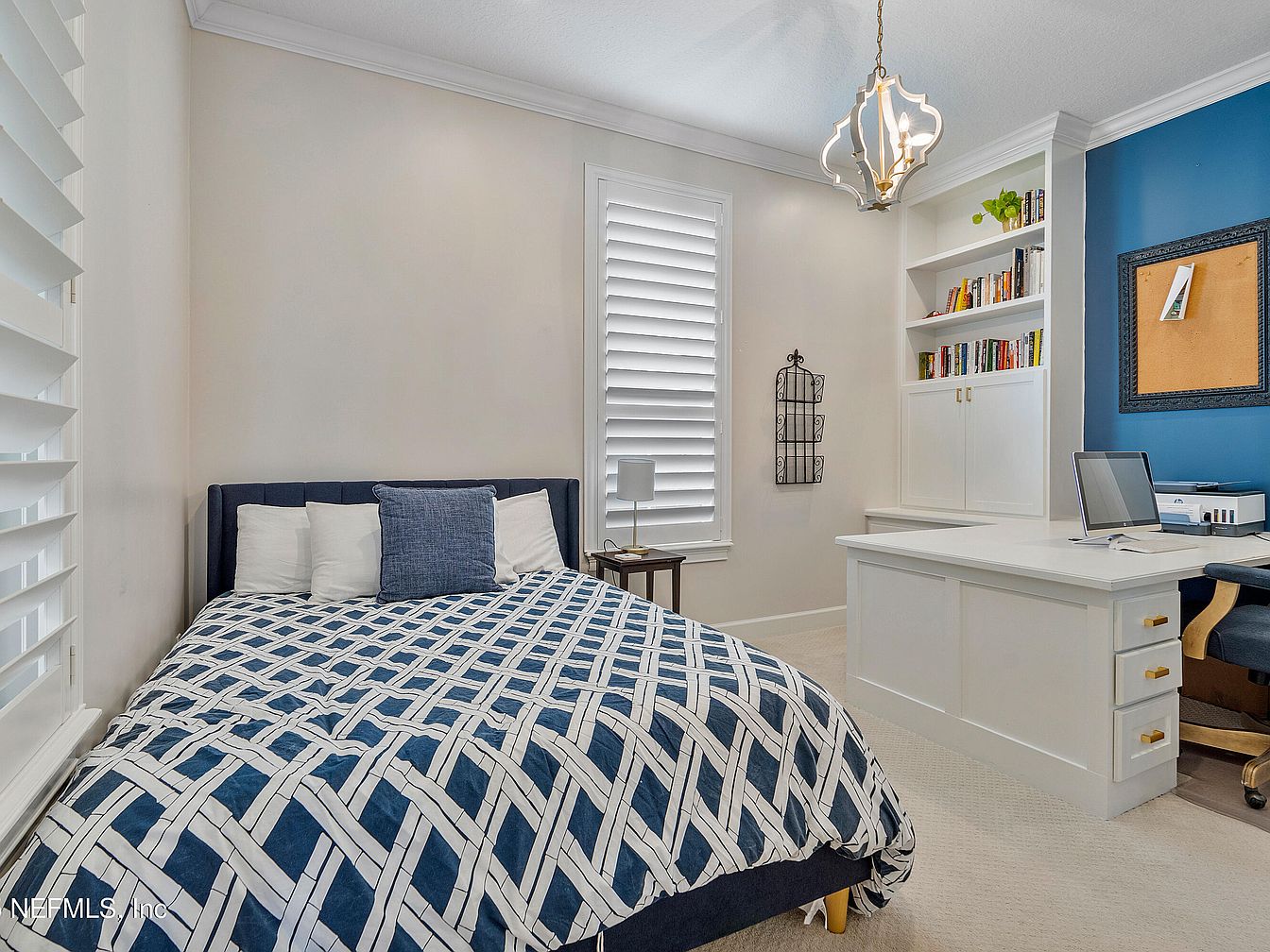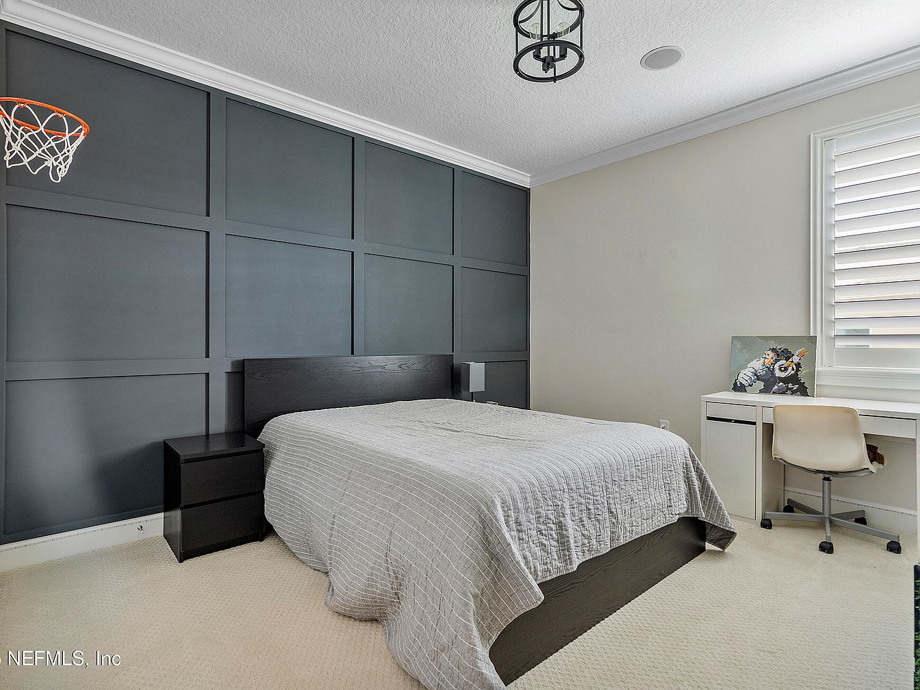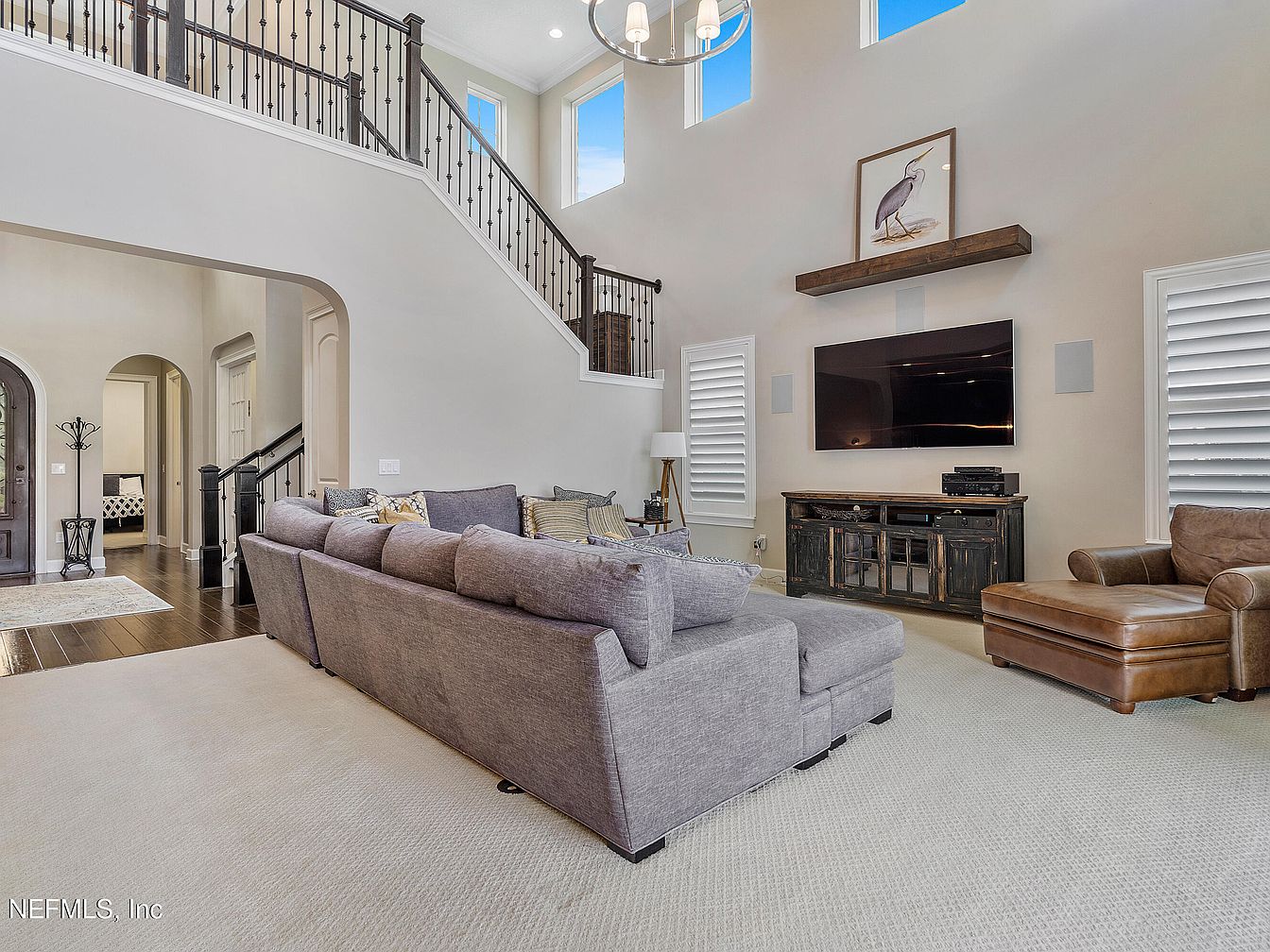 This stunning property is a luxurious, modern home situated in the prestigious gated community of Celestina in Saint Johns County, Florida. The architectural style is contemporary with clean lines, large windows, and a neutral color palette that blends seamlessly with the natural surroundings and waterfront location. Featuring 6 spacious bedrooms and 4.5 elegant bathrooms, the residence boasts a grand entrance with soaring ceilings, rich hardwood floors, and custom crown molding. Additional notable features include plantation shutters, custom lighting, whole-home surround sound, a three-car garage, and a large laundry room with ample storage. The property enjoys a sizeable plot area with lush landscaping and is positioned along a tranquil water body, enhancing the peaceful setting. The home resides within the top-rated St. Johns County School District and is conveniently close to shopping, dining, and major roadways, adding to its appeal for comfortable, luxurious family living. Listed at $1,399,999, this exceptional home combines luxury, functionality, and an enviable location, making it an extraordinary opportunity in the Saint Johns real estate market.