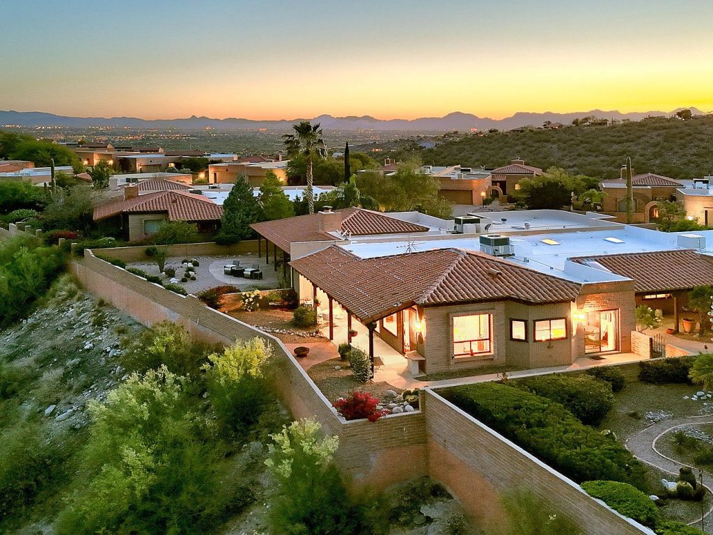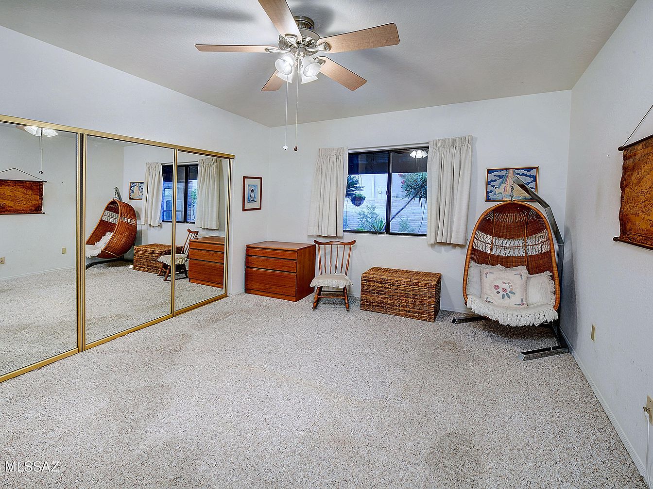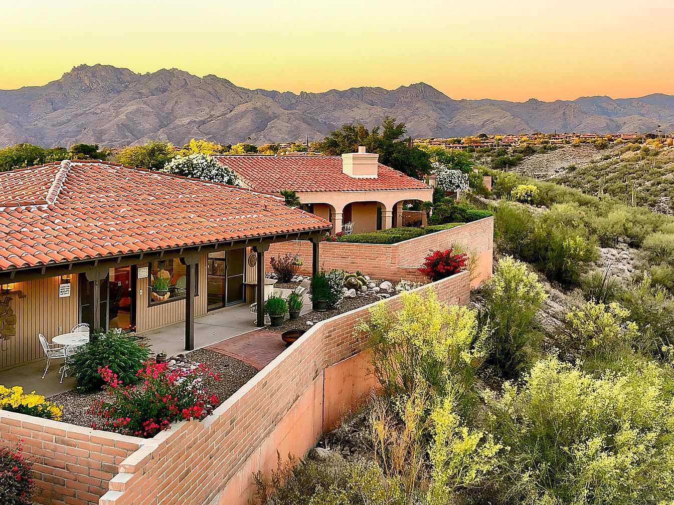 This stunning home, nestled in the desirable Fairfield community of Tucson, Arizona, showcases a charming Southwestern architectural style characterized by its earthy tones and tiled roofing that harmonizes with the natural desert surroundings. The property offers captivating views of the city lights, majestic mountains, and breathtaking sunrises, enhancing the tranquil and scenic living experience. While the exact year built isn’t specified, recent renovations include a newer roof installed in 2021 and an upgraded air conditioning system, ensuring modern comfort and reliability. Inside, the residence features a bright and open living room with high ceilings and an added window to maximize the panoramic vistas. The spacious kitchen is equipped with chiseled edge granite countertops, a pantry closet with pull-outs, and a breakfast nook with built-in storage, perfect for both meal prep and casual dining. The primary bedroom suite boasts a huge closet, dual sinks, a walk-in shower, and a separate tub, offering ample space for relaxation and convenience. Additional highlights include two more bedrooms, a bonus flex room for versatile use, indoor laundry facilities, and an oversized garage that provides extra storage and includes a convenient sink. Outdoor living is equally impressive with large covered patios in both the front courtyard and southeast-facing backyard, complemented by beautiful low-maintenance landscaping and a mature grapefruit tree in front. Listed at $675,000, this home represents a great opportunity to add your personal touch while enjoying a prime location in a scenic and sought-after community.