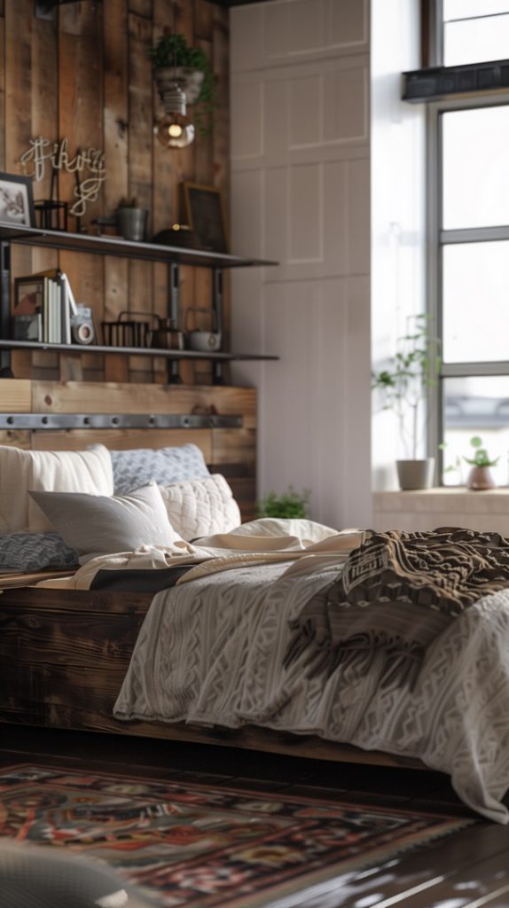 Rustic Elements in Industrial Bedroom