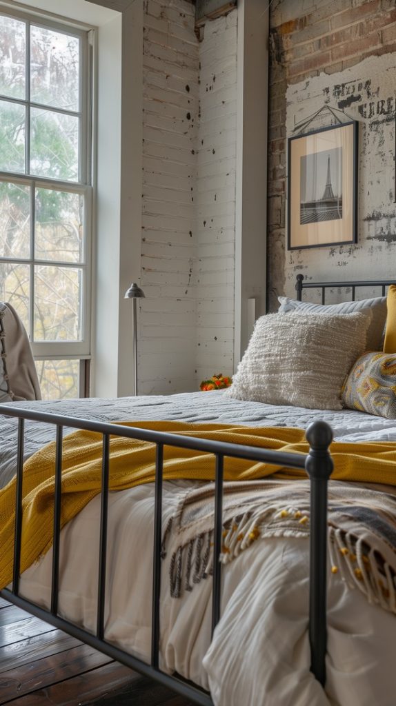 Industrial Bedroom with Yellow Accents