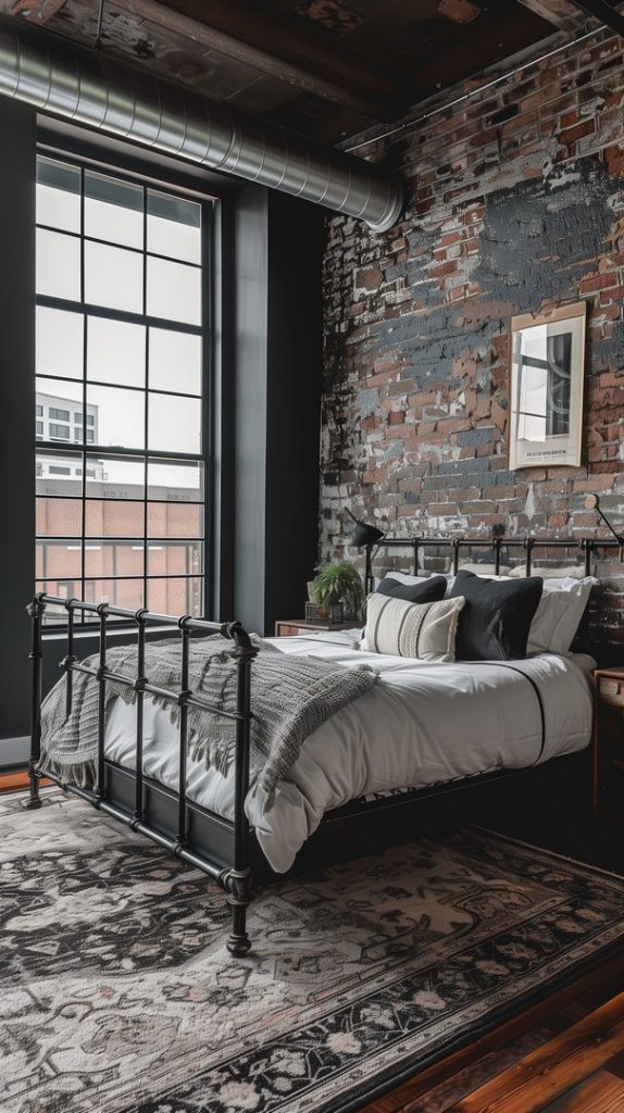 Striking Brick Wall Design in Industrial Bedroom
