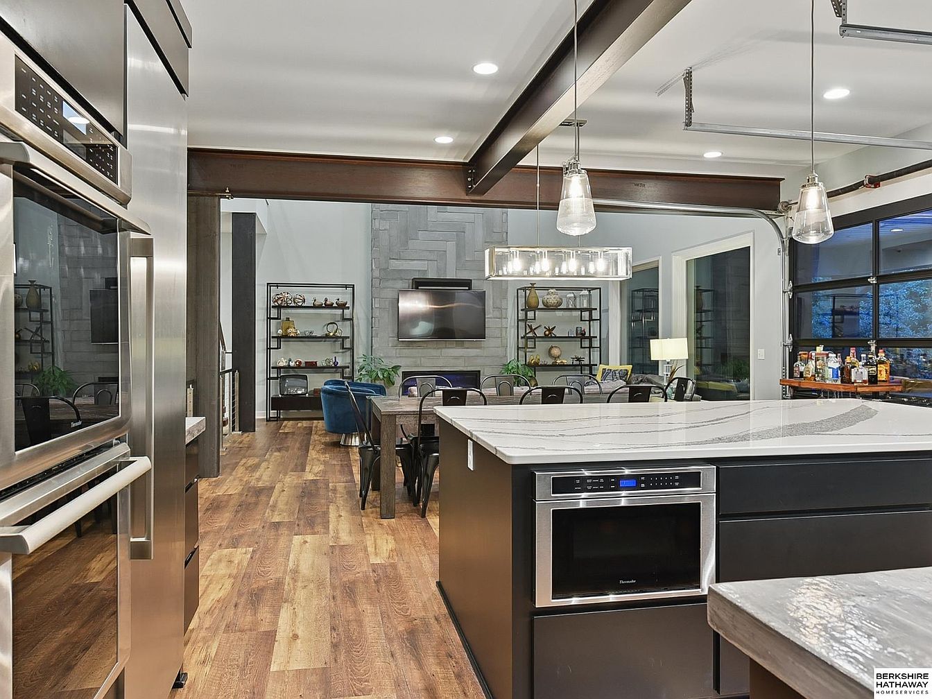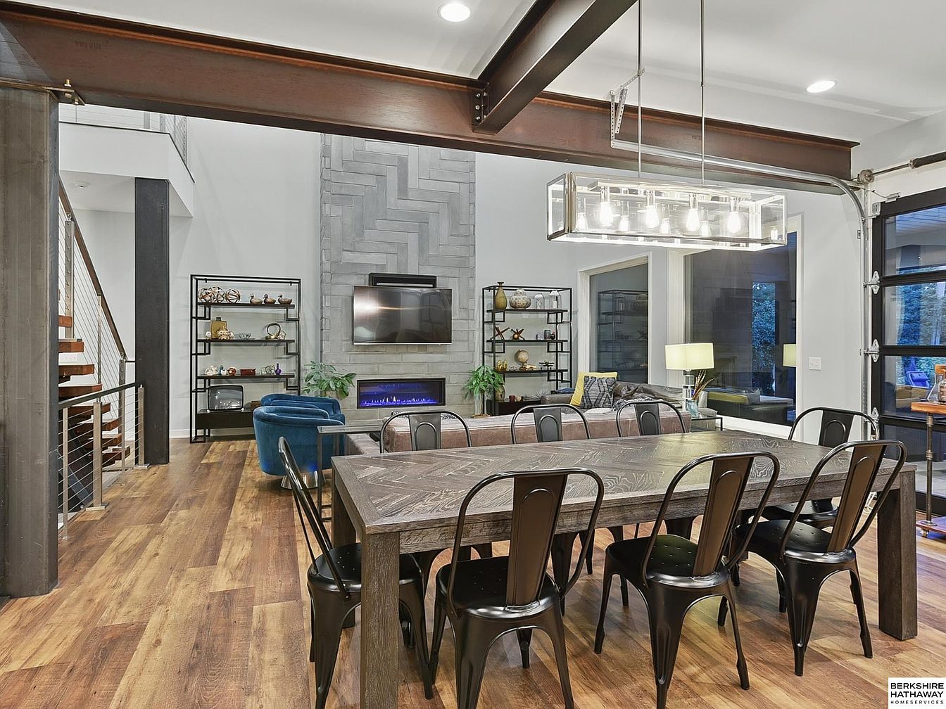 This nearly new industrial-style masterpiece, built in 2017, is located in the heart of Omaha, Nebraska. This luxurious residence features 6 spacious bedrooms and 7 bathrooms, complemented by an oversized 4-car garage with a unique bulkhead entrance to the lower level, providing both functionality and aesthetic appeal with two distinct garage doors. Outside, the property offers a saltwater pool, hot tub, and expansive outdoor living spaces that create an ideal retreat. This home is centrally located near hospitals, shopping, and is within the desirable Westside School district. Listed at $2,350,000, this estate combines modern luxury with practical amenities, all set on a meticulously maintained plot.