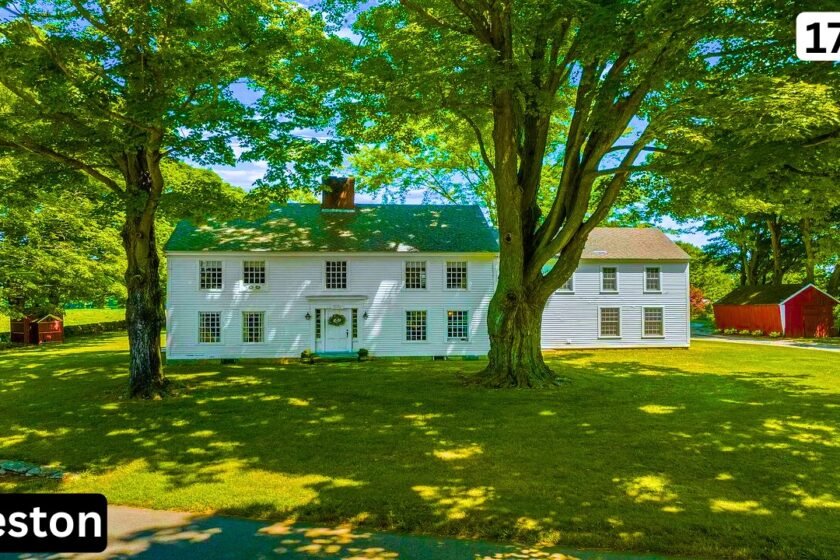 This historic home, built in 1775, is an exceptional example of Colonial architecture in Preston, Connecticut. The property spans 225 acres, with a mix of open meadows and woodlands, and includes a Cape Cod-style house and a 1791 Antique Colonial residence, a commercial greenhouse, and a banquet building. The spacious 9,784 sqft main residence boasts 9 bedrooms, 6 baths, and 4 fireplaces. The property is listed for $7,750,000 and offers numerous opportunities, including farming and event hosting.
