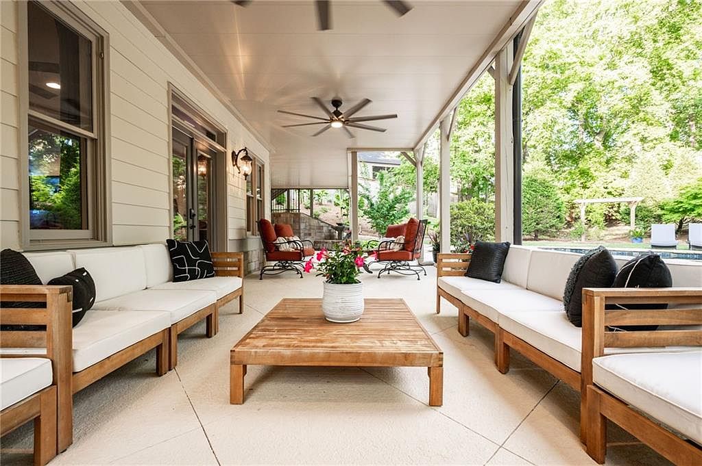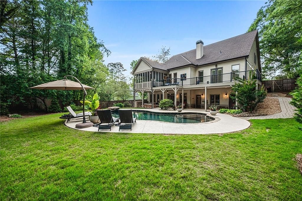 This stunning estate in Smyrna, GA showcases a harmonious blend of traditional and contemporary architectural styles. Built in a style that embraces open-concept and luxurious living, the home features over 5,200 finished square feet situated on nearly an acre of serene, non-HOA land. The spa-inspired primary suite offers a luxurious retreat with a jetted tub, walk-in closet, and access to a large new Timbertech deck, overlooking a fenced backyard adorned with mature Japanese Maples and year-round flowering plants. Additional space is found upstairs with two bedrooms, a Jack and Jill bathroom, and a versatile loft area, while the finished terrace level includes a guest suite, kitchenette, recreation room, gym, and two full baths, opening directly to a saltwater pool with updated concrete decking and a nearby fire pit. The listing price is $1,225,000, making this exceptional Smyrna home a coveted retreat in one of the area’s most desirable communities.
