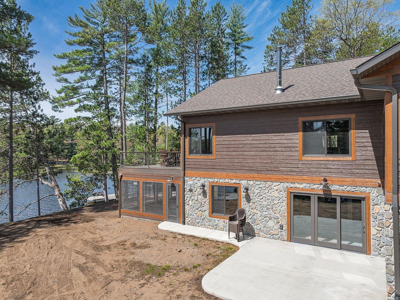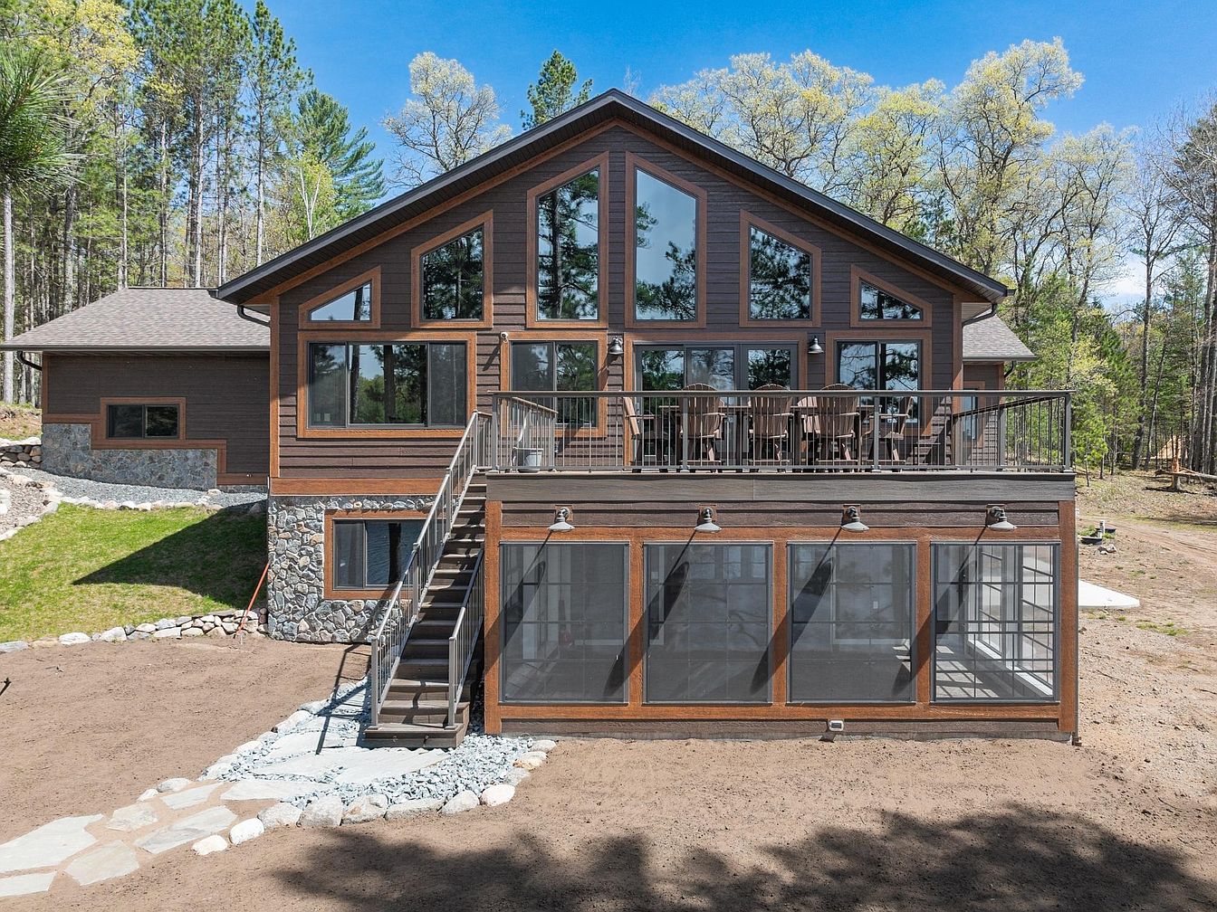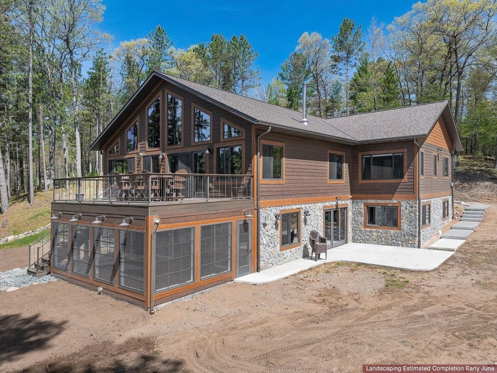 This newly-constructed luxury lakefront home in Conover, Wisconsin, exemplifies contemporary Northwoods architectural style with its striking combination of wood siding and stone accents. The home embraces natural splendor with 414.77 feet of pristine ripple-sand frontage on Upper Buckatabon Lake, offering breathtaking uninterrupted views through soaring, expansive windows. Situated on a wooded lot that ensures privacy, the residence includes a wet boathouse, two piers, and a boat lift, perfect for endless water recreation on the lake’s 871 acres of crystal-clear waters. Inside, the layout highlights modern luxury and functionality, featuring a chef’s kitchen with granite countertops, premium appliances, and a spacious island. The primary suite serves as a serene retreat with lake views, an office, a large walk-in closet, and a spa-inspired bathroom. Located just 20 minutes from Eagle River, this turn-key retreat is listed at $2,650,000 and represents the pinnacle of refined lakefront living in Wisconsin’s Northwoods.