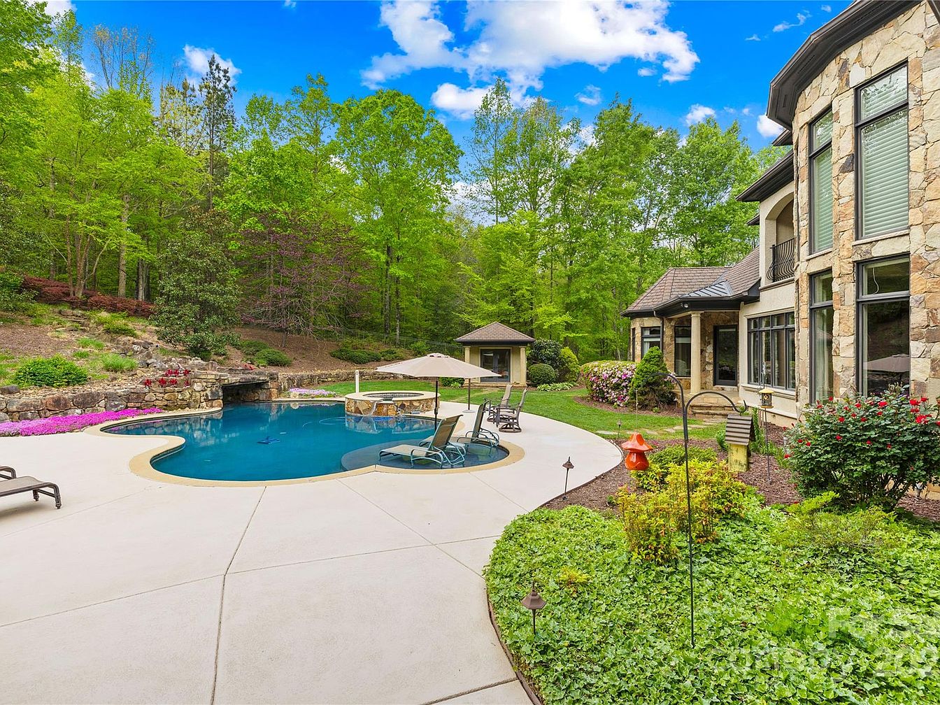 This exquisite estate located in Sherrills Ford, North Carolina, embodies a luxurious blend of traditional and contemporary architectural styles, featuring expansive multi-faceted roofing and large bay windows framed in stone and stucco. Nestled on over 10 private acres, this home offers an impressive 8,800+ square feet of finished living space designed for grandeur and comfort alike. The outdoor space is a serene oasis with a sparkling pool, spa, lush landscaping, and an outdoor lounging area, enhancing privacy and relaxation. Inside, the luxurious primary suite is a private retreat featuring a spa-inspired bath and custom closets with their own washer/dryer. This estate is listed at $3,150,000, representing a rare opportunity for luxury, privacy, and comfort on a spacious, private plot.