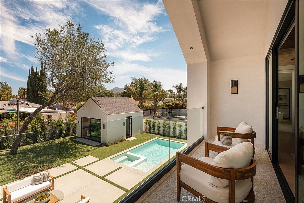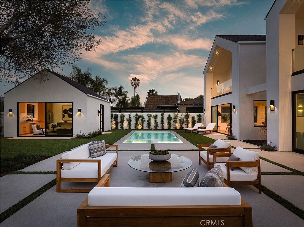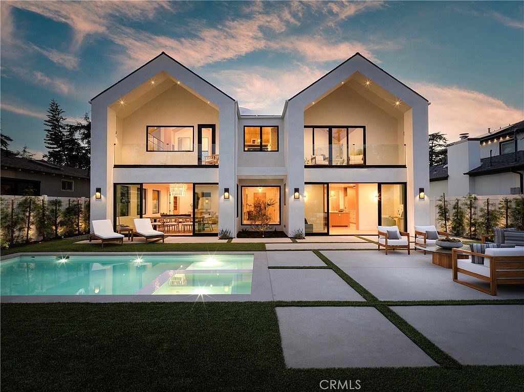 Welcome to 4936 Strohm Avenue—an architectural triumph nestled in the heart of Toluca Woods, Toluca Lake, CA. This exquisite Modern Scandinavian inspired estate, built in 2025, spans approximately 4,381 square feet of meticulously curated living space on an 8,100 square foot lot. The home features 6 bedrooms and 6.5 bathrooms, designed to combine elegance with functionality. The architecture showcases soaring ceilings and engineered white oak floors, complemented by a striking 9-foot pivot entry door that creates a breathtaking introduction to this refined residence. The property also includes an entertainer’s backyard, complete with a new pool and spa, an outdoor lounge, and a versatile 1-bedroom, 1-bath accessory dwelling unit (ADU). Ideally located just two minutes from the vibrant restaurants and shops of Riverside Drive and moments from Toluca Lake, the residence embodies modern luxury living in a prime location. The listing price is $3,950,000.