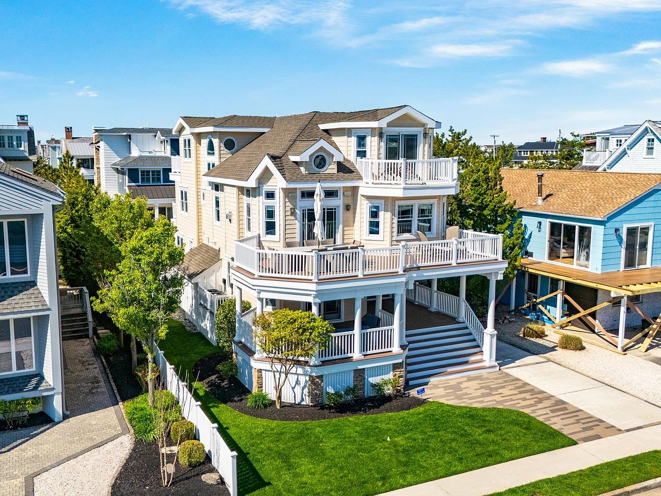 This elegant beach block home, nestled just six houses from the beach, is situated in Avalon’s tranquil North End in New Jersey. The architectural style exhibits a modern coastal design with traditional shingle siding and multiple decks that maximize ocean views and outdoor living. The home boasts a substantial 3,500+ square feet of living space across three stories, featuring 6 bedrooms and 6 bathrooms, with four bedrooms offering en-suite bathrooms, and five of the bedrooms having private deck access. The listing price for this exquisite and highly desirable ocean-view home, located just steps from Avalon’s public recreation facilities including tennis, basketball, pickleball courts, playgrounds, and ball fields, is $5,895,000.