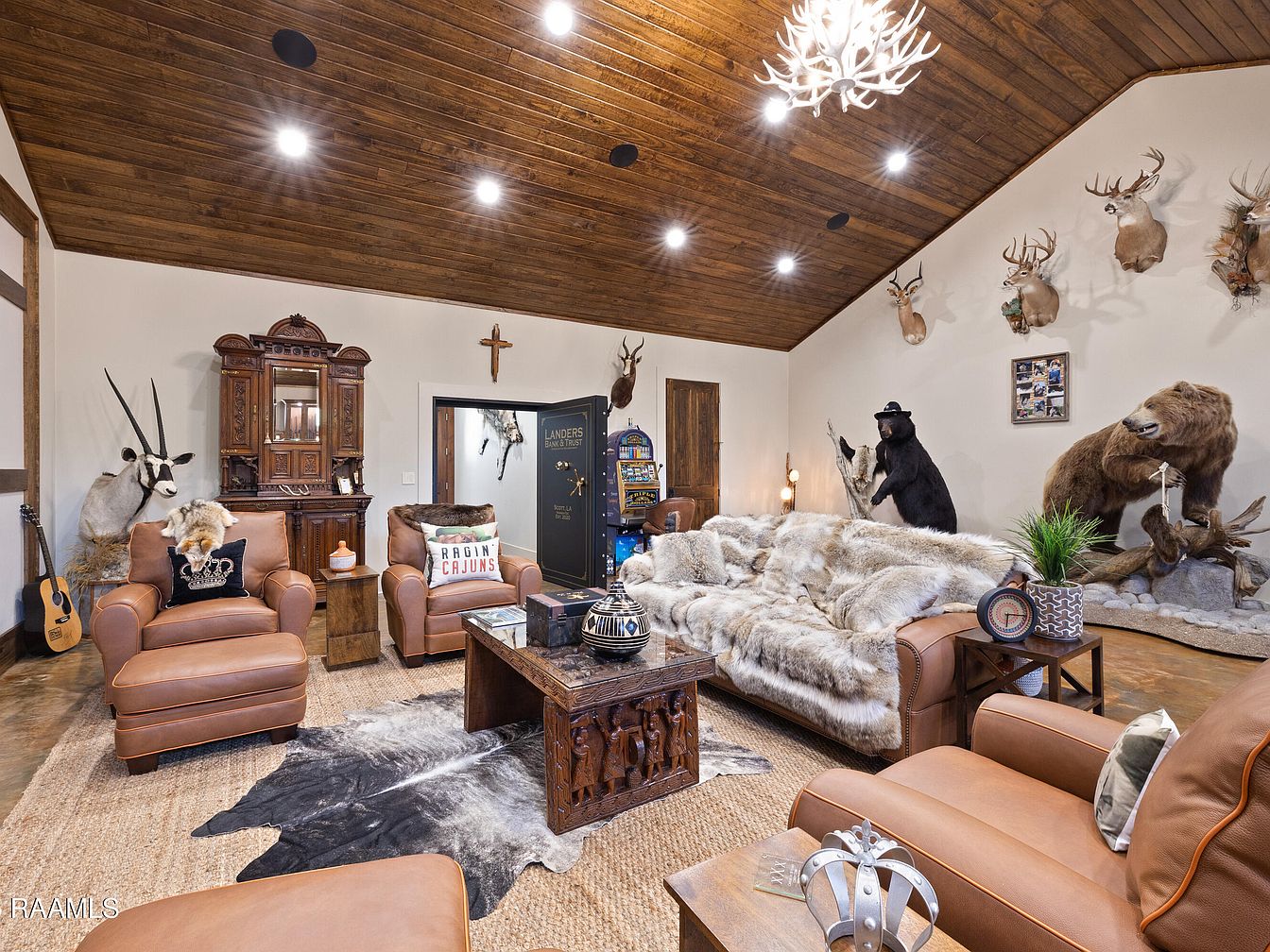 This exquisite single-level estate in Scott, Louisiana, exemplifies sophisticated architectural design that skillfully blends modern comfort with cutting-edge technology. The private theatre is equipped for an immersive sensory experience with premium seating, projection, surround sound, and even nostalgic touches like a popcorn machine and candy display. Luxurious living quarters include two expansive primary suites designed for ultimate resort-style comfort, complemented by two additional guest bedrooms with a stylish Jack & Jill bath. Outdoor entertaining is equally impressive with a covered patio, full outdoor kitchen, fireplace, and custom retractable screens designed for year-round enjoyment. The corresponding listing price is $5,000,000. The entire estate spanning a total of 22.92 acres offers an unparalleled living experience combining privacy, luxury, and functionality just minutes from Lafayette, Louisiana.