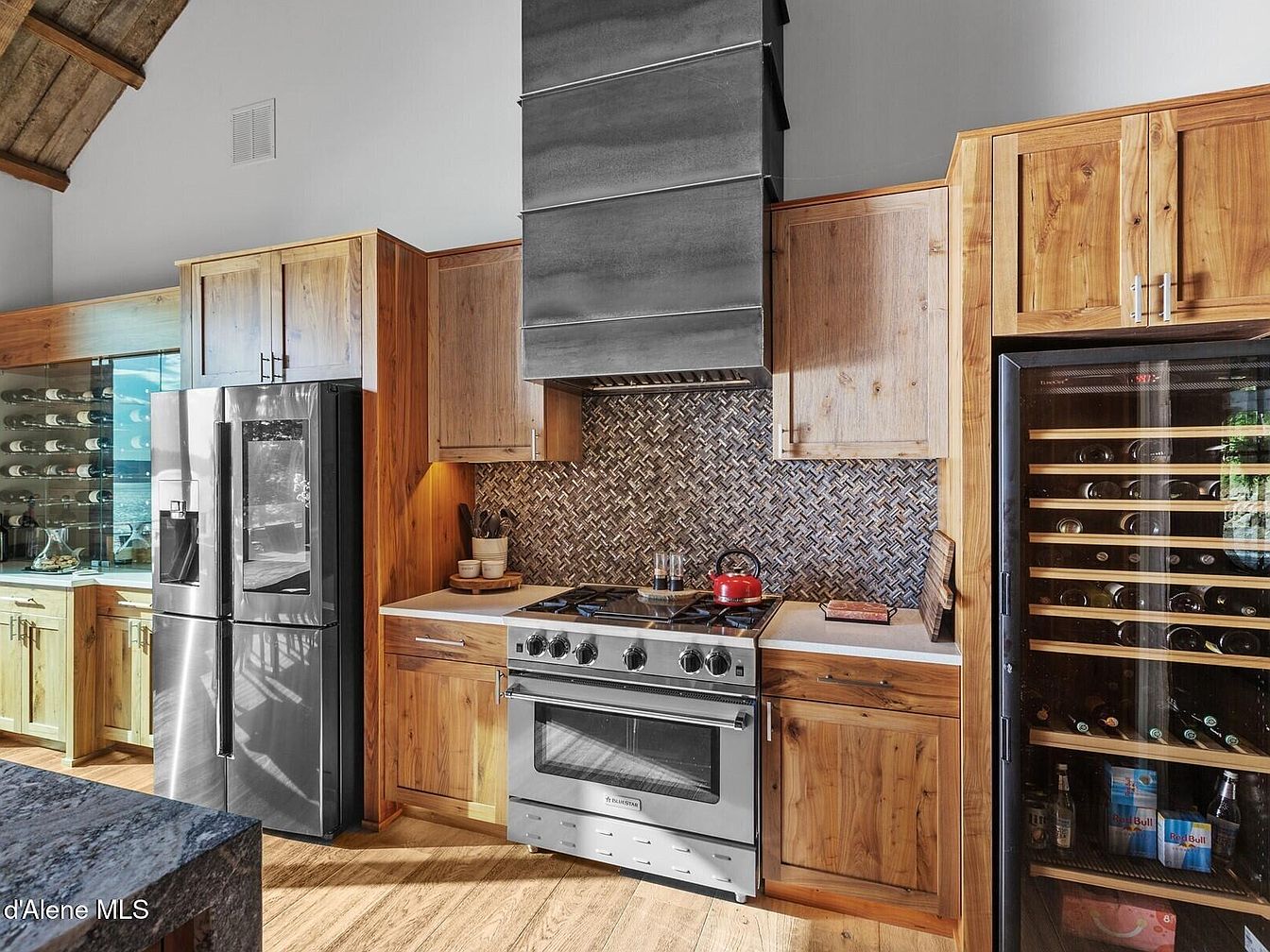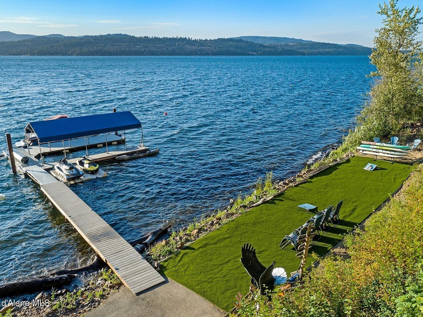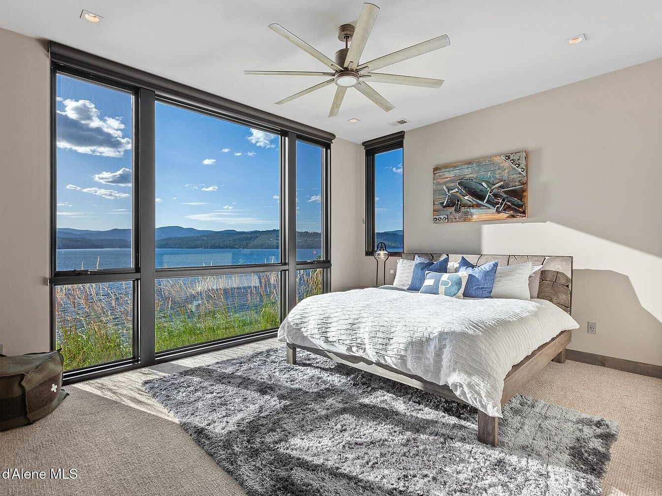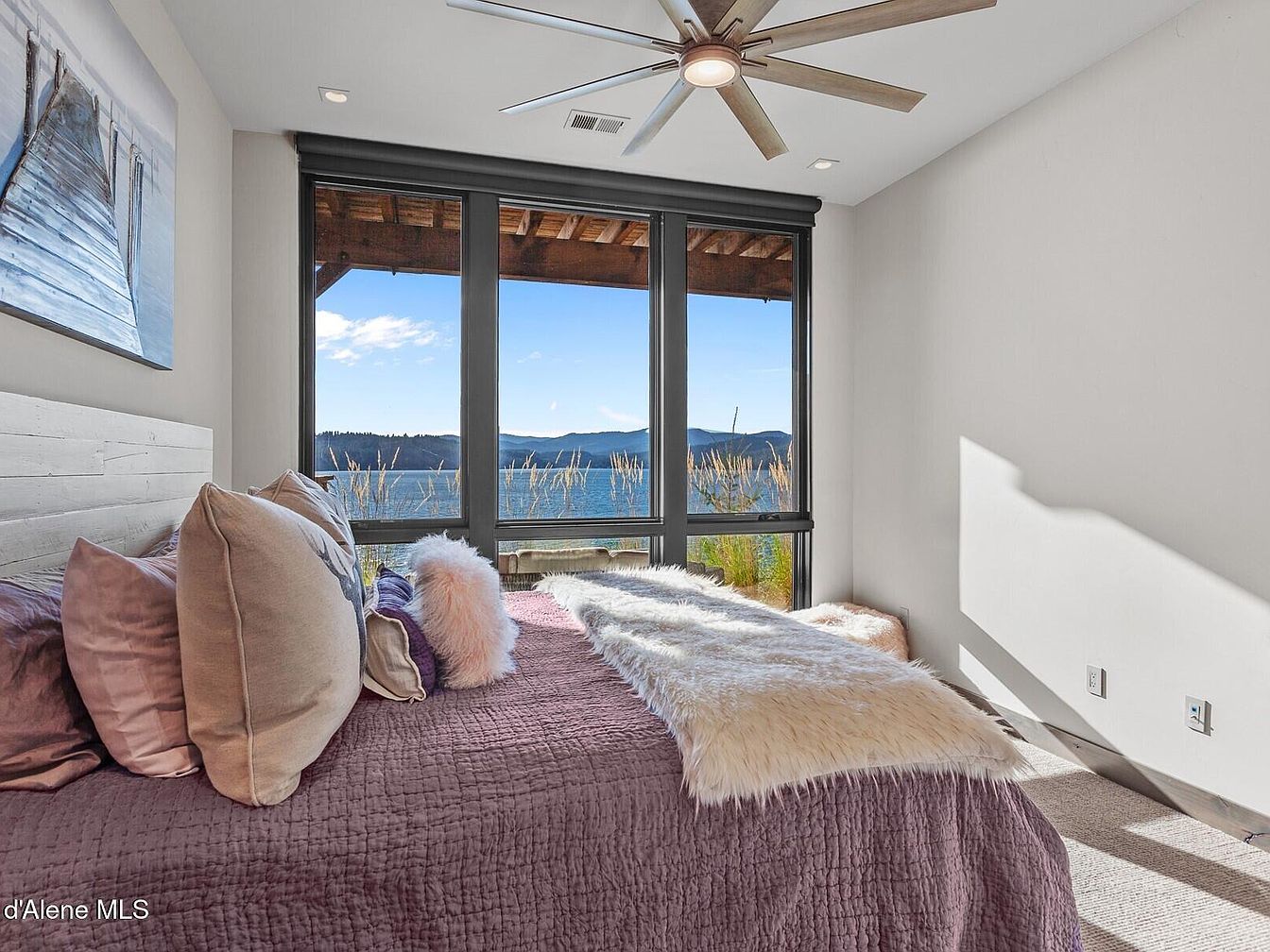 Experience Skyfall Ranch, an exquisite example of rustic modern architecture located in the serene town of Harrison, Idaho. Built in 2017, this luxurious residence spans over 5,000 square feet and is situated on a sprawling 10.2-acre waterfront plot with 437 feet of pristine, deep, and crystal-clear shoreline on Lake Coeur d’Alene. The home boasts a harmonious blend of natural materials including reclaimed wood, Montana stone, and exposed beams, which foster a tranquil and timeless atmosphere throughout the interior and exterior spaces. Fully furnished and turnkey, the 4-bedroom home features en-suite accommodations complemented by a bonus bunk room and lower recreational area, providing versatile living options for family and guests. The expansive wraparound decks offer breathtaking western views, perfect for peaceful mornings and stunning sunsets. Listed at $7,195,000, Skyfall Ranch presents a rare opportunity to own a private lakeside sanctuary that balances seclusion with proximity to the charming communities of Harrison and downtown Coeur d’Alene.