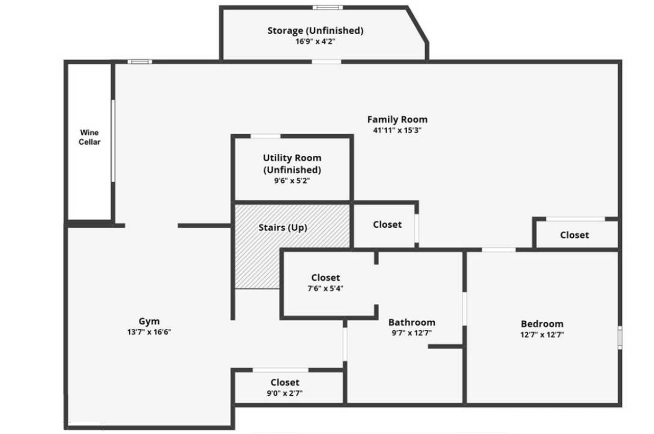 The basement offers a spacious family room, a dedicated gym, and a private bedroom with ample closet space. A full bathroom serves this level, while additional storage areas, a wine cellar, and an unfinished utility room provide functionality. This floor is designed for entertainment, fitness, and convenience.