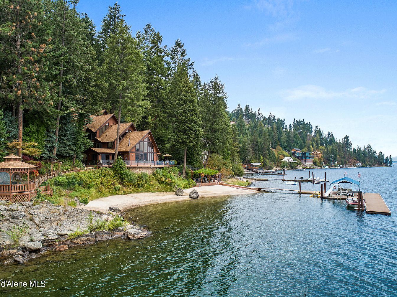 This exquisite lakefront property, situated on the coveted West Shore of Lake Coeur d’Alene, Idaho, features a charming beach house nestled amid tall, lush evergreens. Showcasing a classic lake cabin architectural style accented by natural wood and large windows, it offers breathtaking views of the pristine waters and surrounding forest. The listing includes two waterfront parcels, totaling 232 feet of sandy beach frontage, with an opportunity for expansive development or remodeling on the vacant southern parcel. Priced at $5,950,000, this unparalleled estate offers flexibility for multi-generational living or investment potential, making it a rare and valuable slice of lakeside paradise.