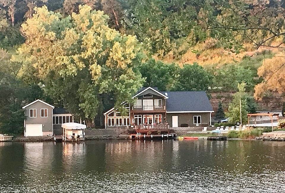 This secluded lake front property in South Bend, NE offers stunning natural views and a peaceful retreat setting. The architectural style is a charming blend of rustic and modern lakeside design, featuring large windows and wooden decking that seamlessly connect indoor and outdoor living spaces. The main house includes 3 bedrooms plus an office and 2.5 bathrooms, providing ample space for family and guests. An additional separate boat house contains a full bedroom and bath, adding privacy and convenience for visitors or lakefront activities. This home is listed for $950,000.
