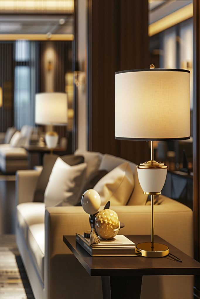 Incorporate stylish table lamps on side tables or consoles to add a touch of warmth and personality to your living room design.
