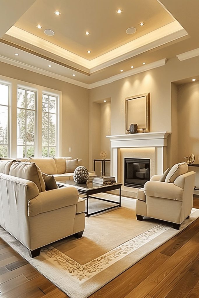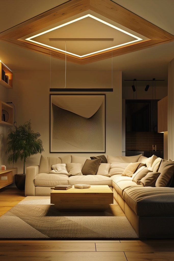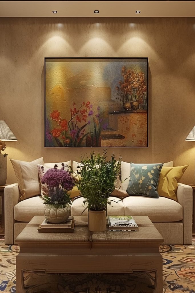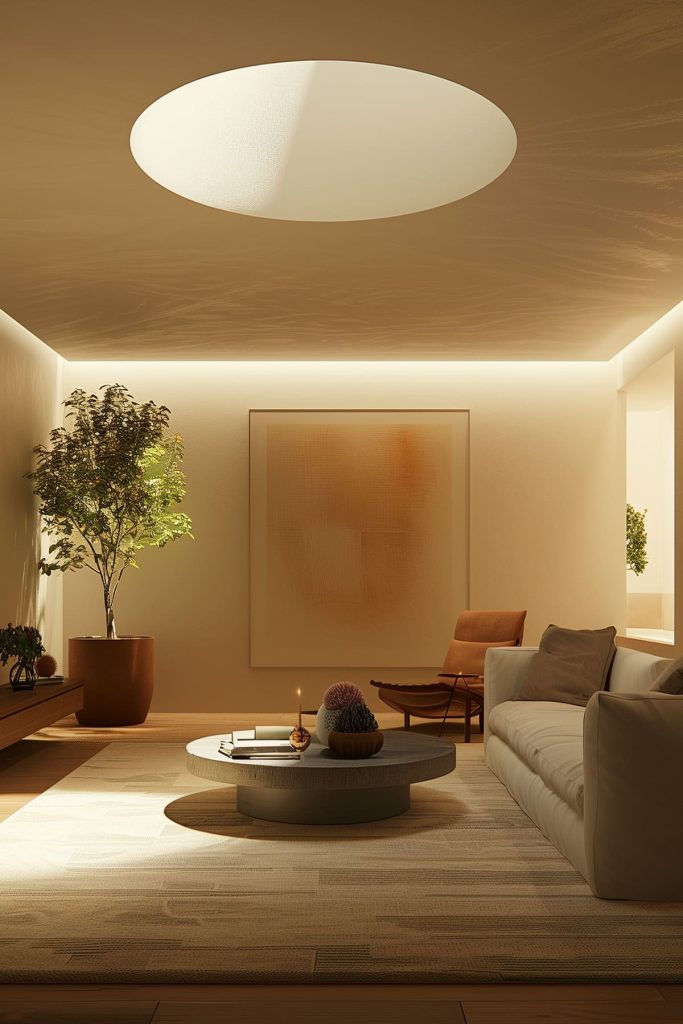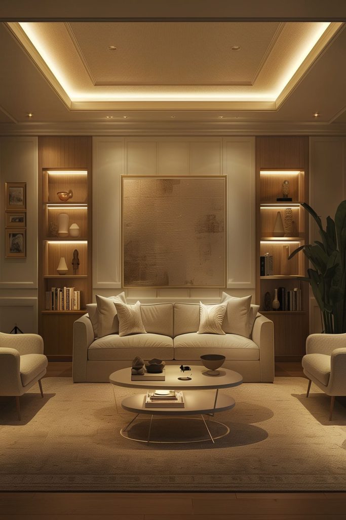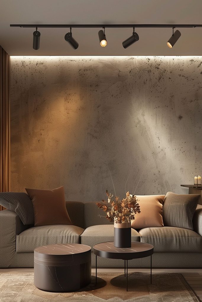 Incorporate adjustable spotlights to highlight specific focal points or artworks, providing focused illumination where needed.