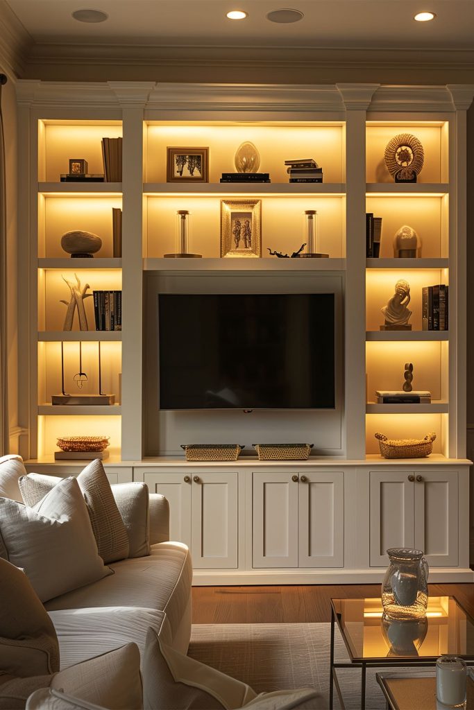 Illuminate built-in cabinets, shelves, or display cases with under cabinet lighting to showcase decor items and create ambiance.