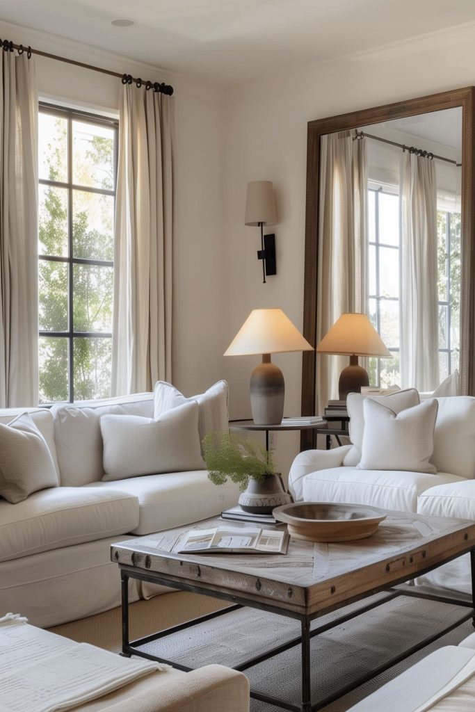 Maximize natural light by keeping window treatments minimal and strategically placing mirrors to reflect light throughout the space.