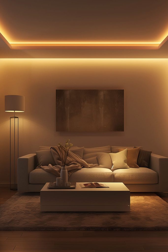 Introduce subtle cove lighting along ceilings or baseboards to add depth and visual interest while minimizing glare.
