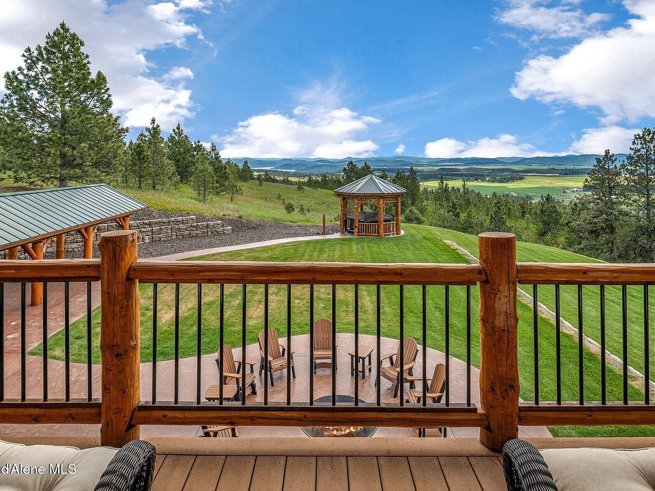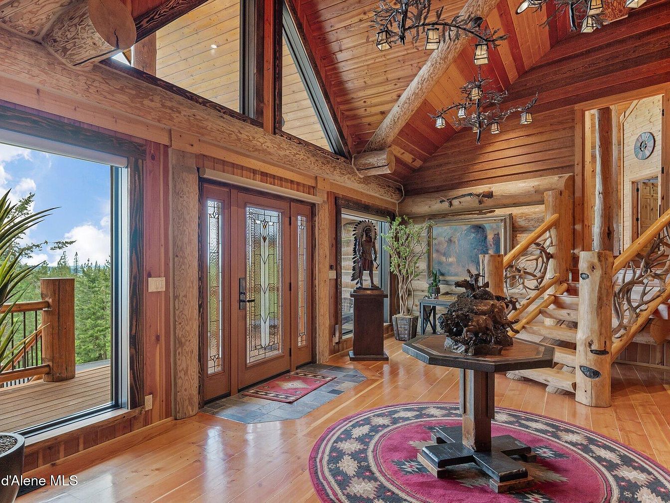 This exquisite residence on Painted Rose Rd in Worley, Idaho, is a stunning example of custom-built log home architecture, created in partnership with one of the nation’s premier hand-crafted log home builders. This property features true main floor living with private guest quarters, complemented by an extensive range of high-end amenities. Nestled on 130 professionally maintained acres, the estate offers breathtaking panoramic views of Coeur d’Alene Lake, surrounding mountains, and pastoral scenery. Outdoor enthusiasts will appreciate the three miles of wide groomed trails, sunny southern exposure, natural springs, developable ponds, and excellent utilities including a 45 GPM well, a Kohler 48KW commercial generator backup system, and three 1000-gallon propane tanks. Priced at $6,750,000, this magnificent estate combines luxury, privacy, and a unique recreational lifestyle in a tranquil, idyllic setting.