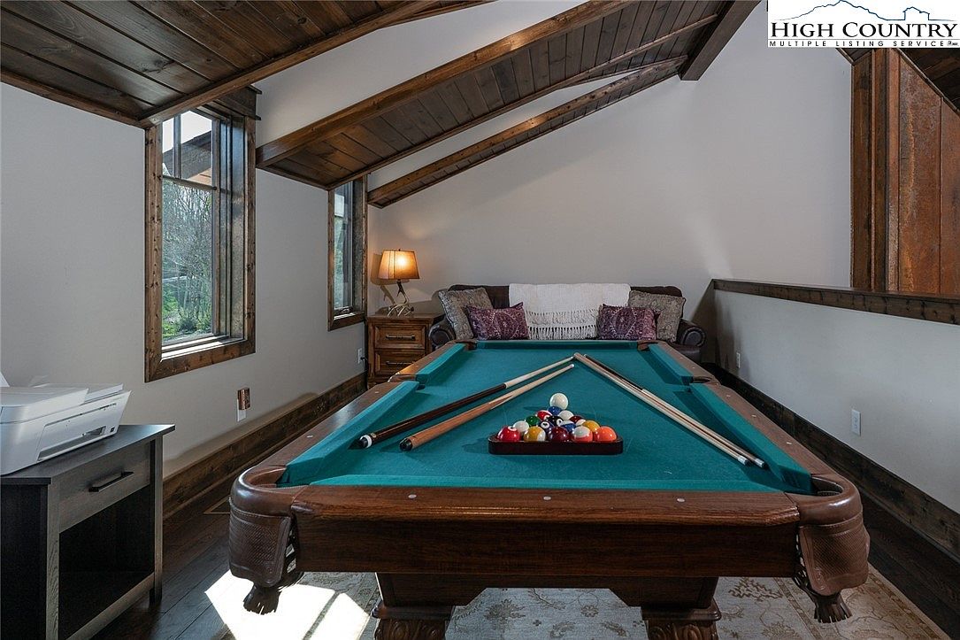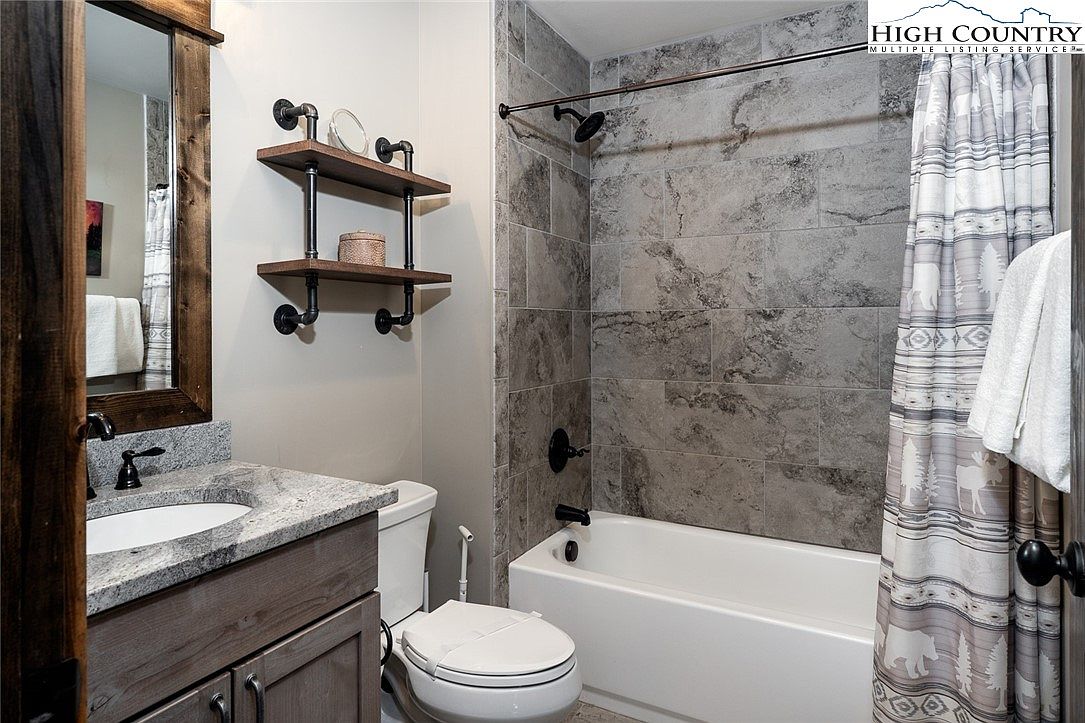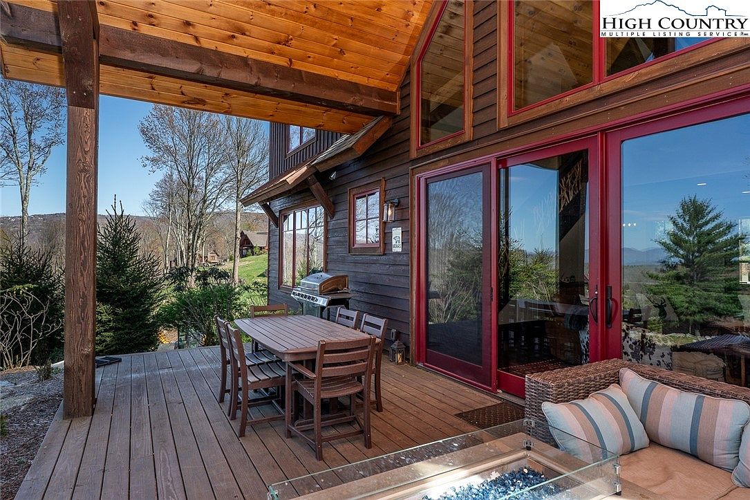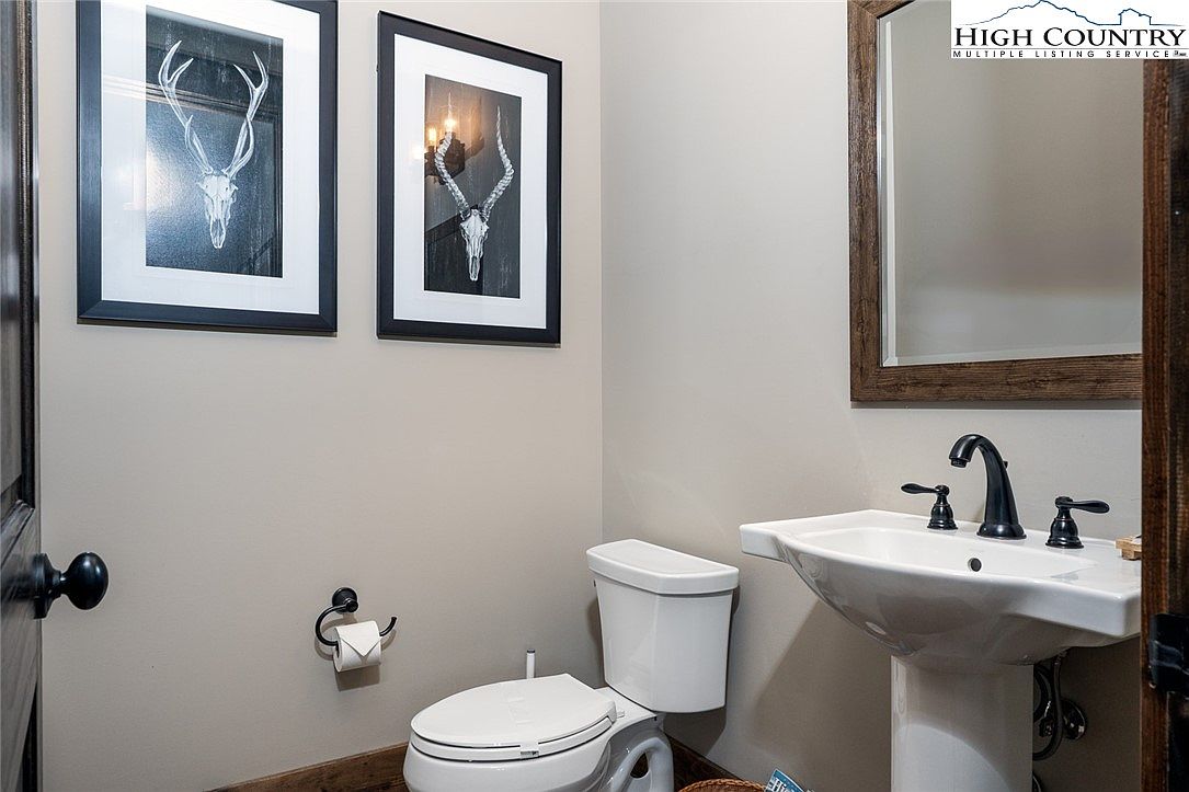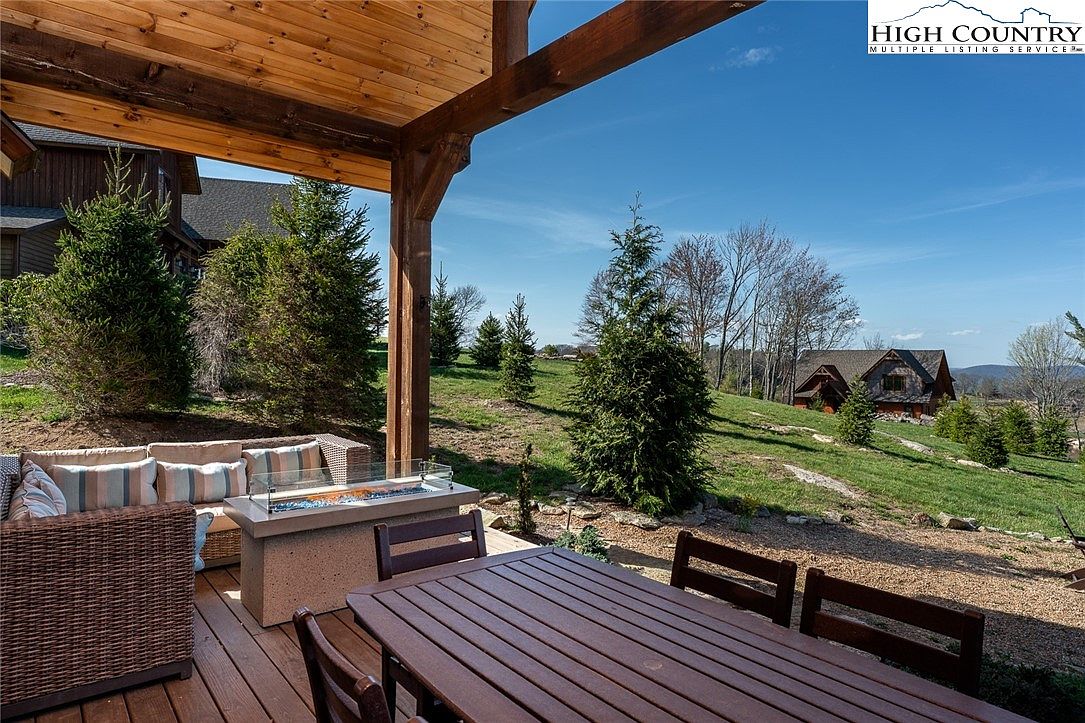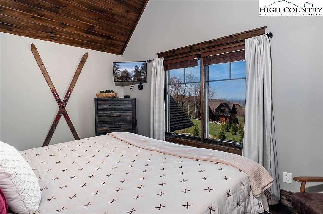 Experience refined mountain living in this beautifully constructed home located in the prestigious Lodges at Eagles Nest, Banner Elk, NC. The 3-bedroom, 2.5-bathroom home listed at $1,299,000, spans a generous open-concept layout designed for both comfort and entertainment. The spacious main-level primary suite offers a private retreat featuring a spa-like ensuite with double vanity, large tub, and tiled walk-in shower. Additional amenities on the main floor include a conveniently located half bath and laundry closet. Built in 2020, this residence exemplifies modern mountain architectural style with its rich wood accents, vaulted ceilings, and expansive windows that frame breathtaking panoramic views.