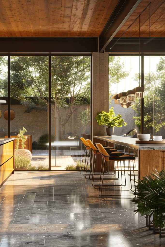 Maximize natural light and blur the lines between indoor and outdoor spaces by incorporating floor-to-ceiling windows or sliding glass doors, creating a seamless connection with nature.