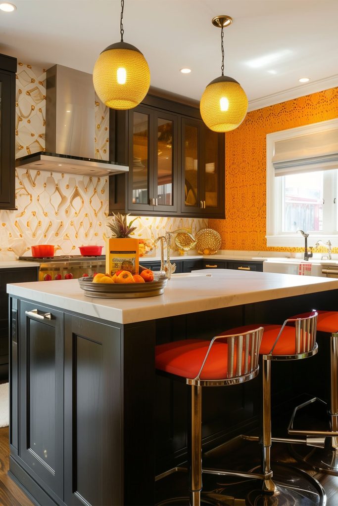 Create a focal point with an accent wall in a bold color or textured wallpaper, enhancing the visual appeal and adding depth to your kitchen’s design.