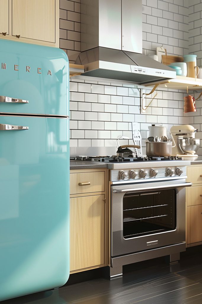 Make a statement with retro-inspired appliances in bold colors or sleek stainless steel finishes, adding vintage charm and functionality to your kitchen space.