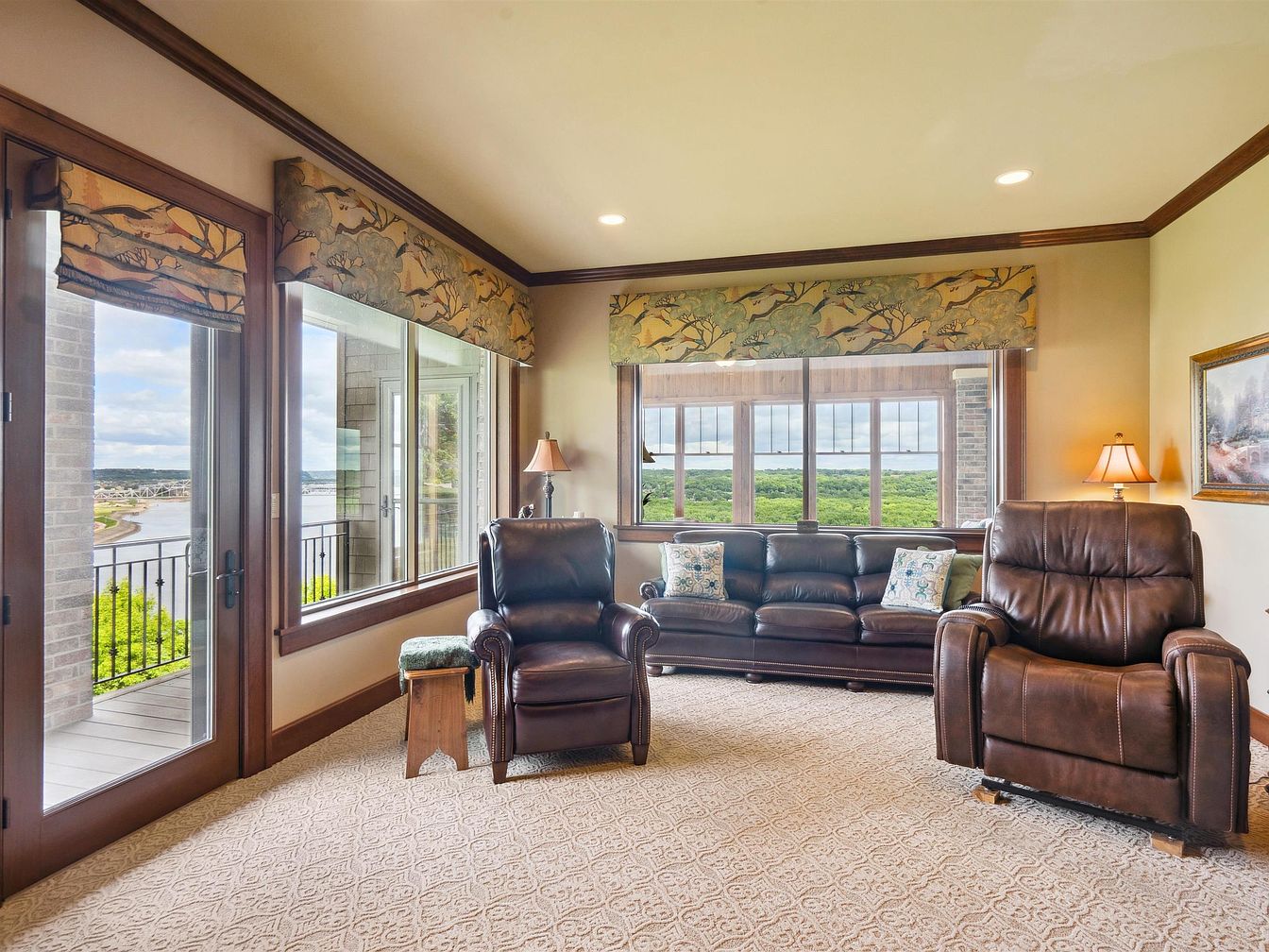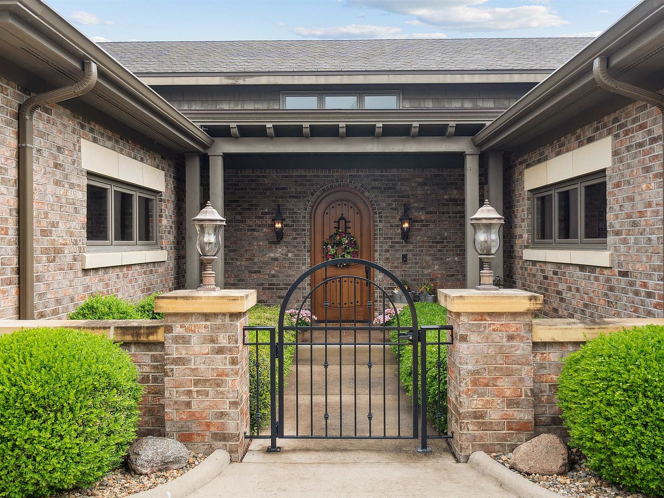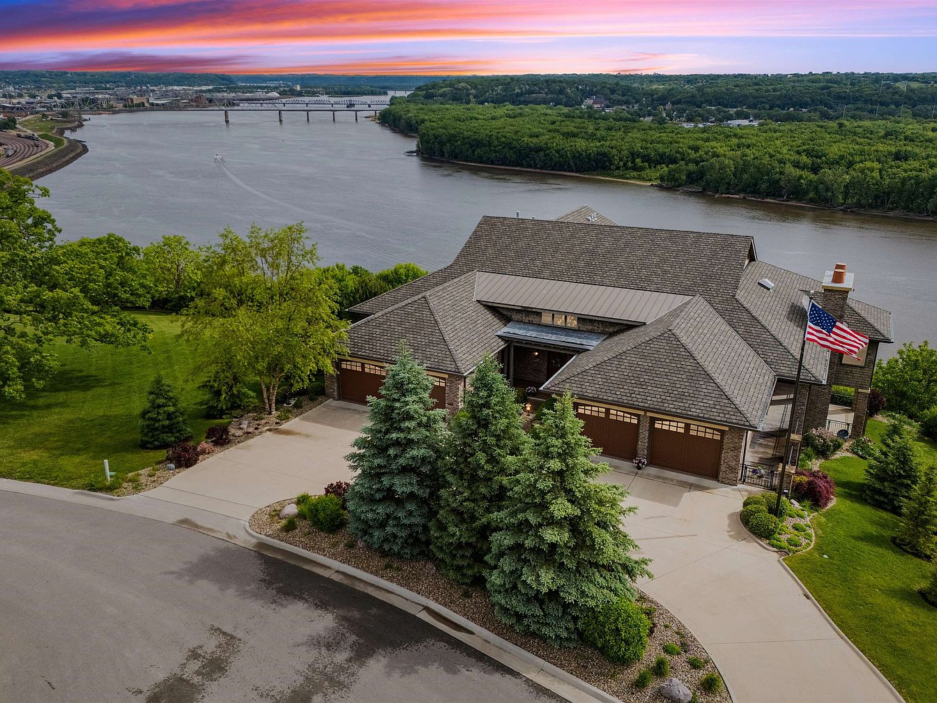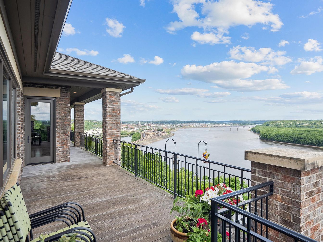 This distinguished all-brick estate in Dubuque, Iowa, sits majestically on the bluffs overlooking the Mississippi River, offering breathtaking panoramic views. The architectural style blends timeless elegance with craftsmanship, characterized by soaring 10-foot ceilings on both main and lower levels, and exquisite custom solid cherry woodwork, including 8-foot doors. Spanning over 7,000 square feet in total, the home comprises 4,300+ square feet above ground and an additional 3,000+ square feet on the lower level, all designed to maximize comfort and luxury. Set on a substantial plot with lush landscaping, this exclusive property lists for $4,000,000, offering a perfect blend of elegance, comfort, and unparalleled natural beauty in one of Iowa’s most scenic locations.