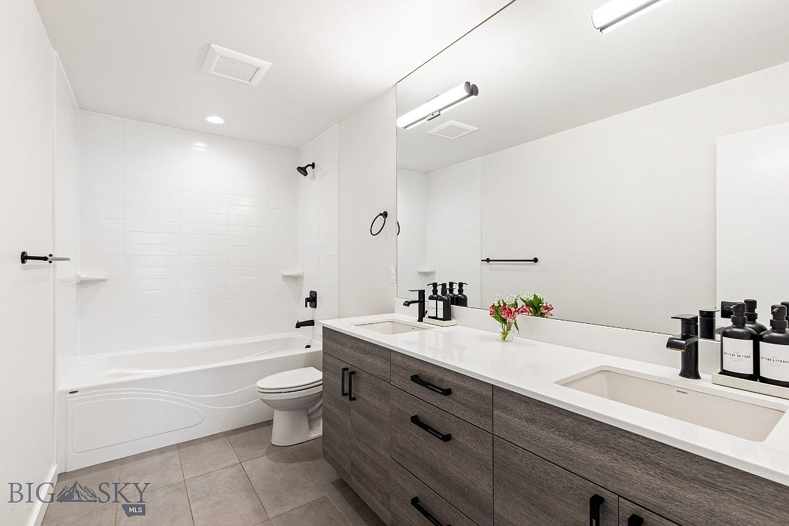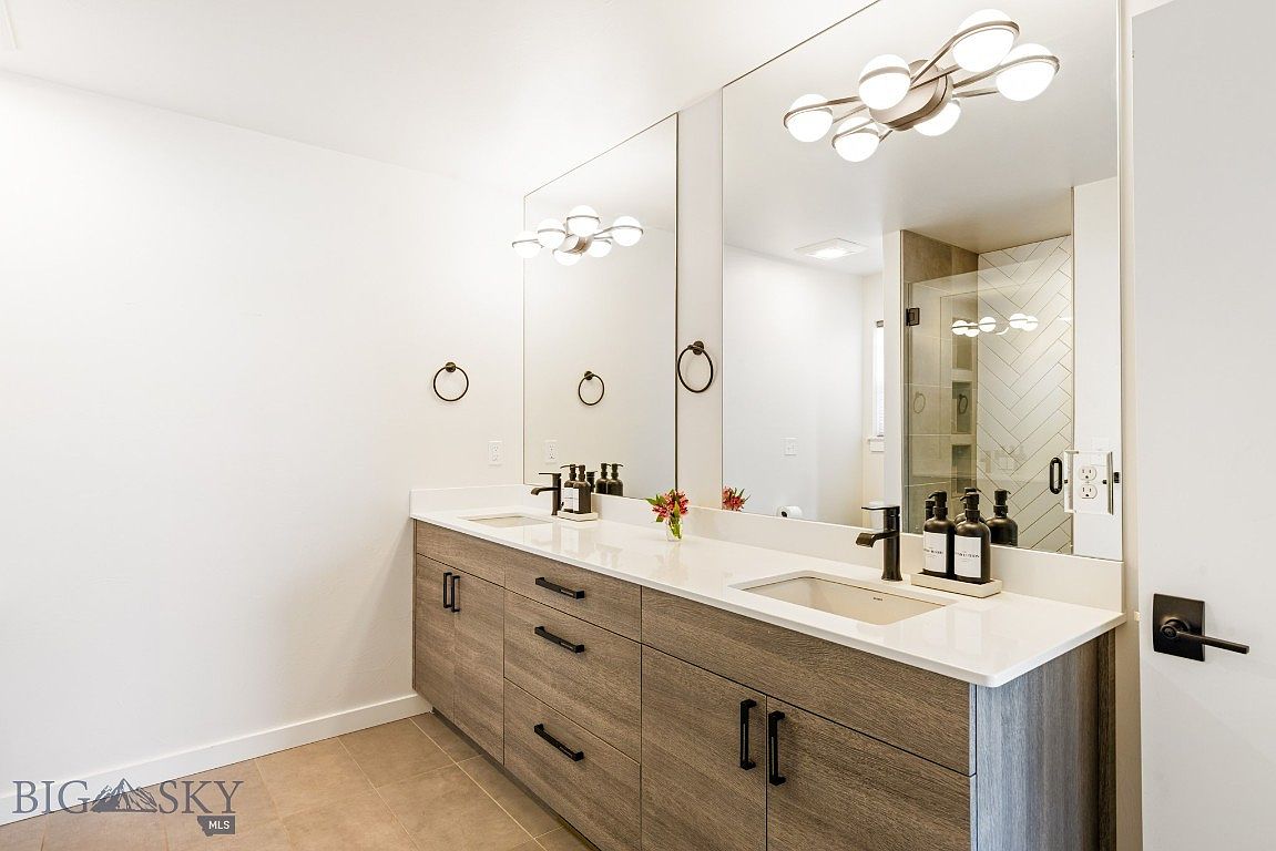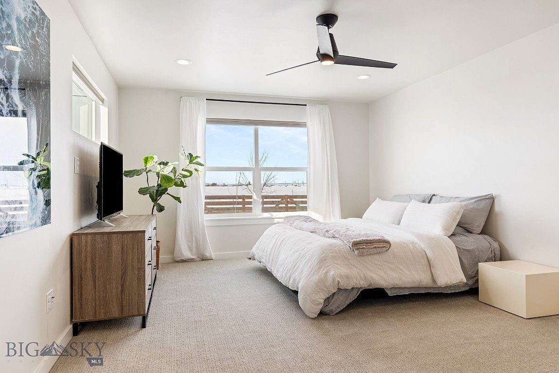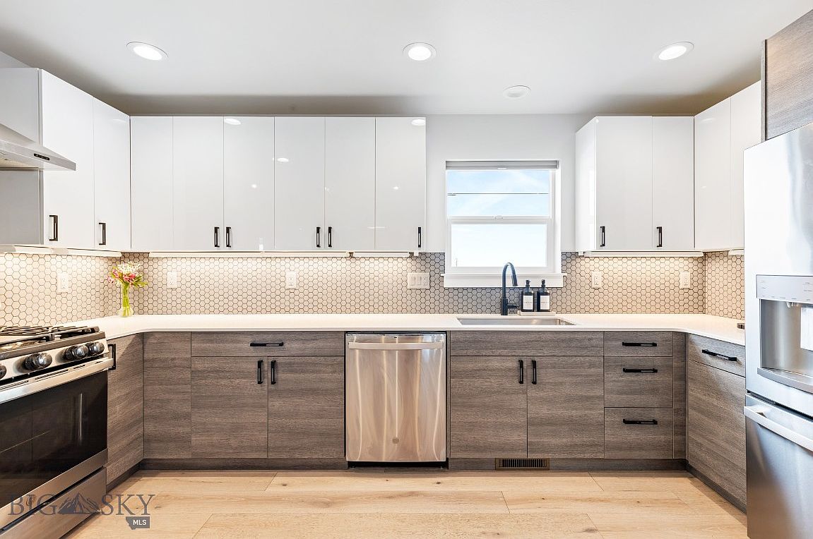 This elegant home, situated in the desirable Flanders Mill neighborhood of Bozeman, MT, epitomizes modern single-level living with a blend of contemporary and craftsman architectural elements. Featuring a well-maintained exterior with clean lines, a combination of white siding and warm wood accents, and a dark, pitched roof, the design offers both curb appeal and functionality. Built recently, this residence boasts 3 bedrooms and 2 bathrooms, with a spacious layout of total square footage and plot area designed for comfort and convenience—specific figures are not provided but the generously sized driveway and two-car heated garage hint at ample space. The interior showcases vaulted ceilings, custom built-ins, and an inviting fireplace, creating a bright and airy living space perfect for both relaxation and entertaining. The kitchen is a highlight with a large island, a gas range, built-in microwave, and a substantial pantry, combined with sleek modern finishes to satisfy any culinary enthusiast. The primary suite is thoughtfully positioned at the home’s far end to maximize privacy, while the front bedrooms offer extraordinary views of the Bridger Mountains, enhancing the home’s natural charm. Outside, the west-facing backyard extends the living space with a sizable patio, hot tub, and beautifully landscaped surroundings, ideal for witnessing Bozeman’s stunning sunsets. Additional features include a spacious laundry/utility room, automatic blinds, air conditioning, and extensive landscaping that add to the home’s comfort and usability. Offered at $925,000, this meticulously cared-for home represents the perfect fusion of style, comfort, and convenience in a prime location, making it an exceptional opportunity in the Bozeman real estate market.