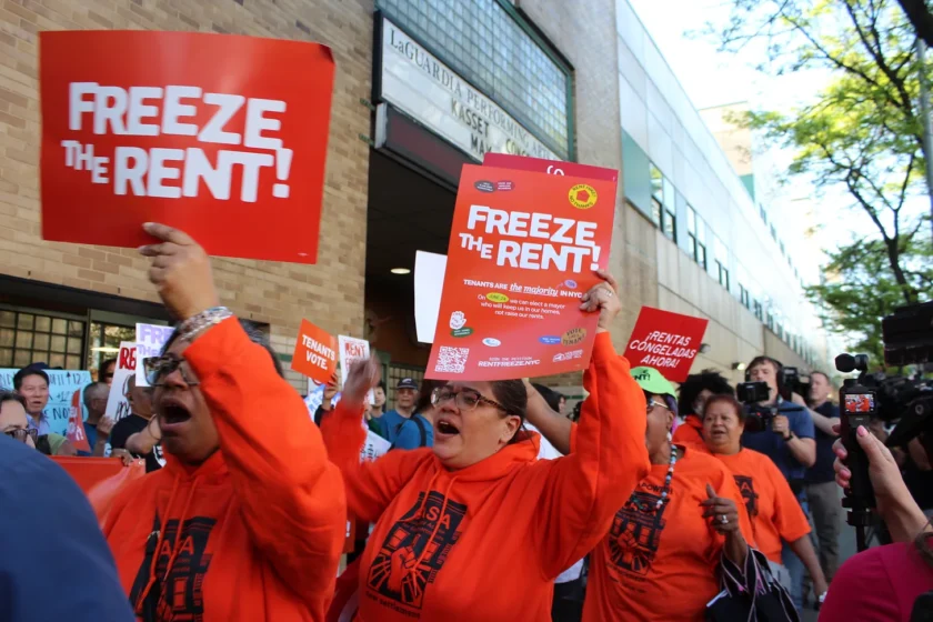 The vote drew loud opposition at El Museo del Barrio in East Harlem, where renters and advocates filled the theater chanting “Freeze the rent” and waving signs like “Stop real estate greed” and “Tenants vote.” The annual vote has again become a flashpoint for New York’s deep divide between renters and landlords.