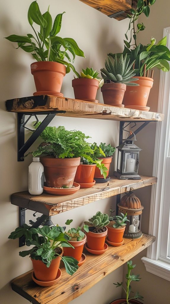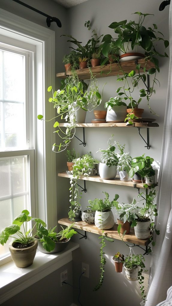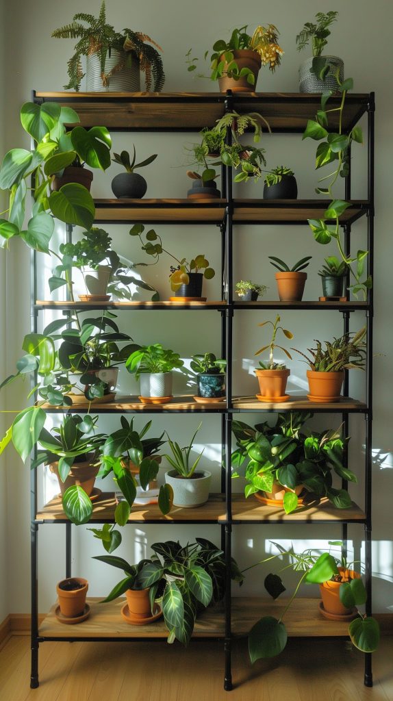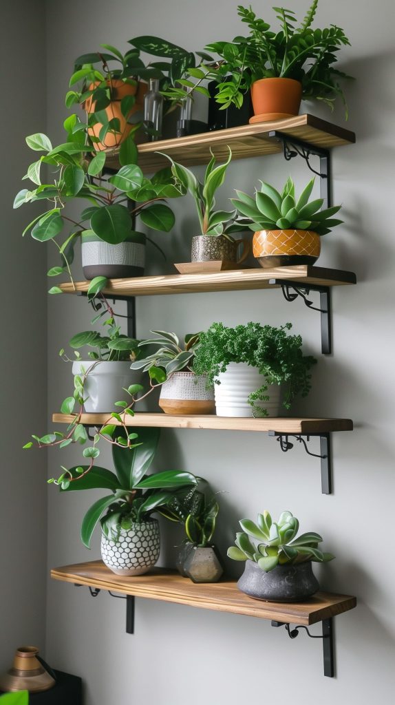 Bamboo shelves add a natural and eco-friendly touch to your plant display. They are lightweight and versatile.
