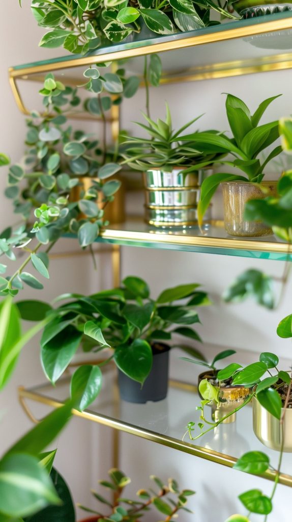 Glass shelves offer a sleek and contemporary look. They are perfect for small plants and can create an illusion of more space.