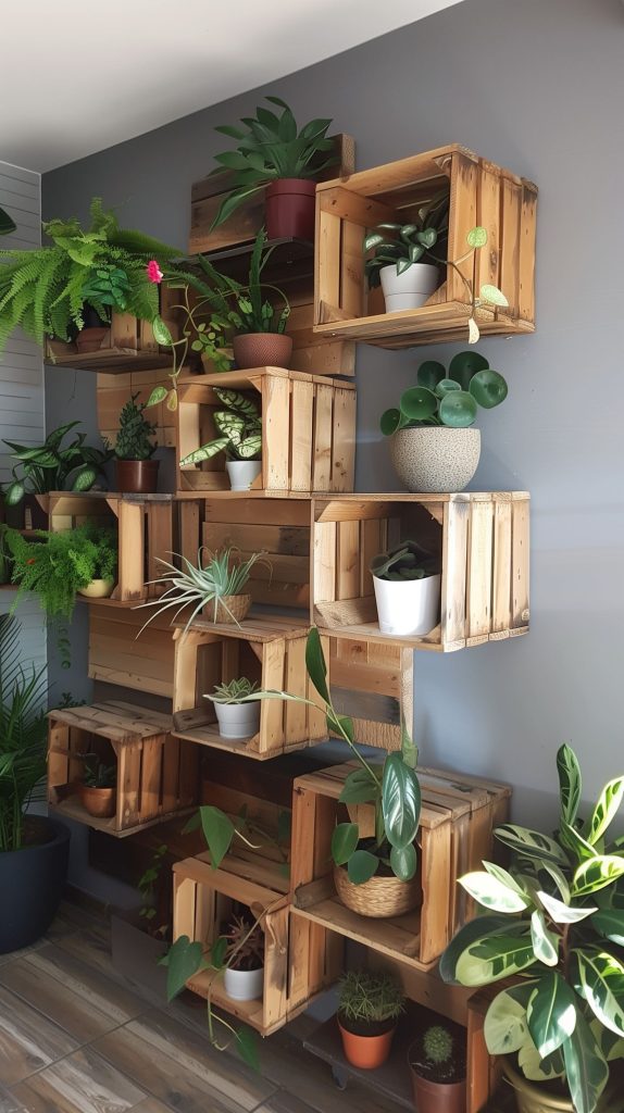 Crate shelves are a rustic and versatile option. They can be arranged in various configurations to suit your space.